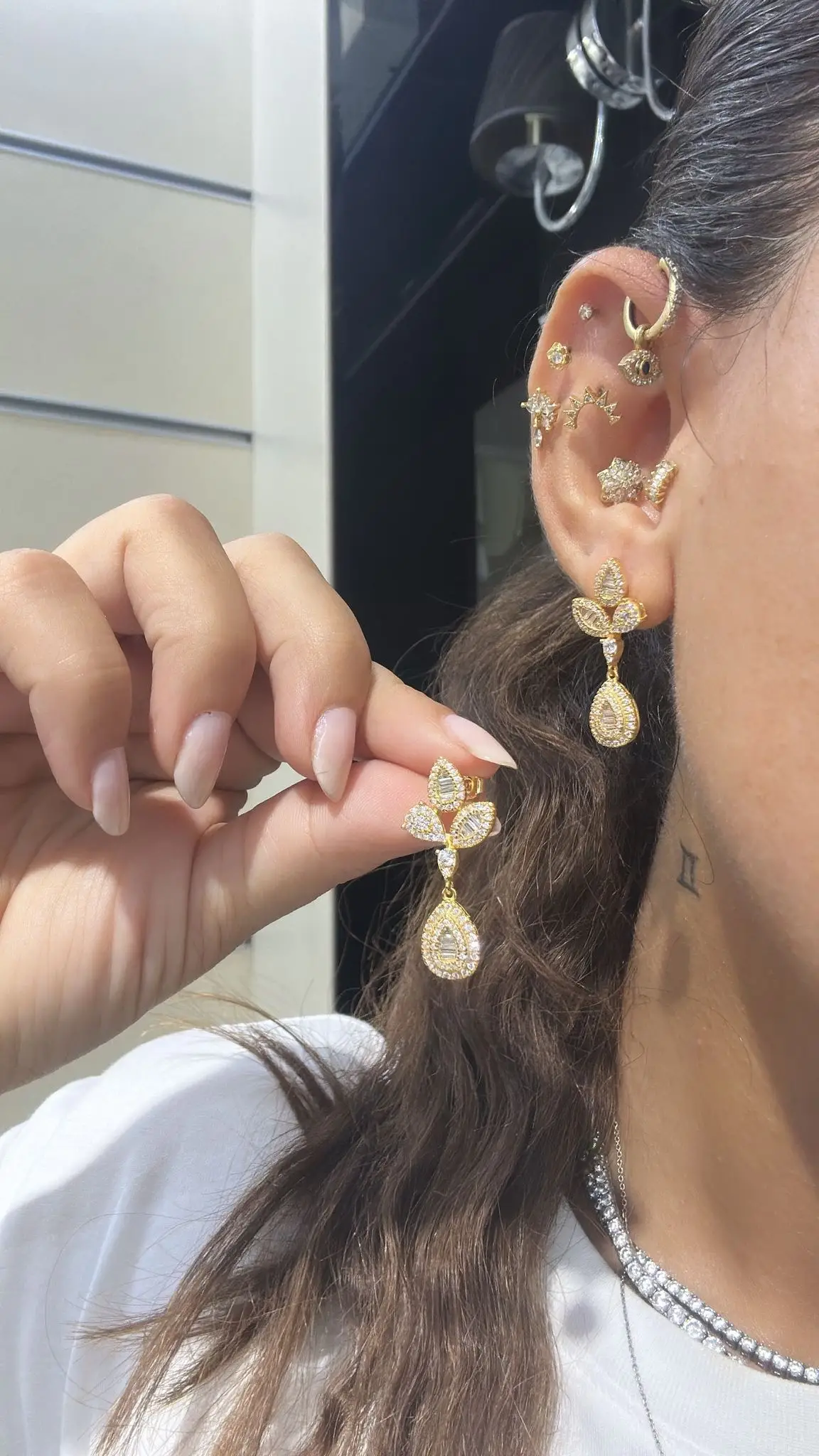 925 Ayar Gümüş Damla Sallantılı Çivili Küpe