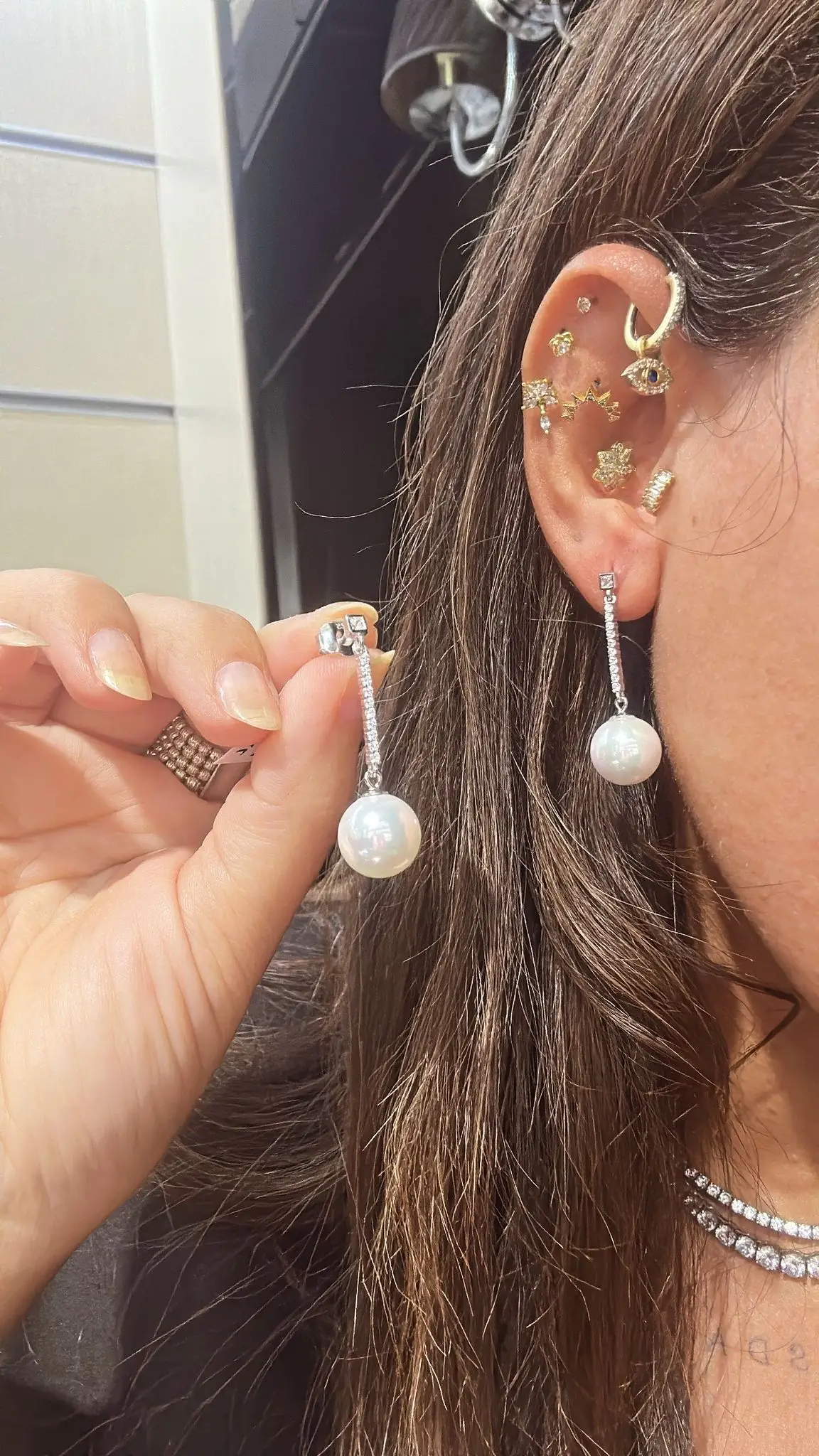 925 Ayar Gümüş İnci Detay Sıra Taşlı Küpe