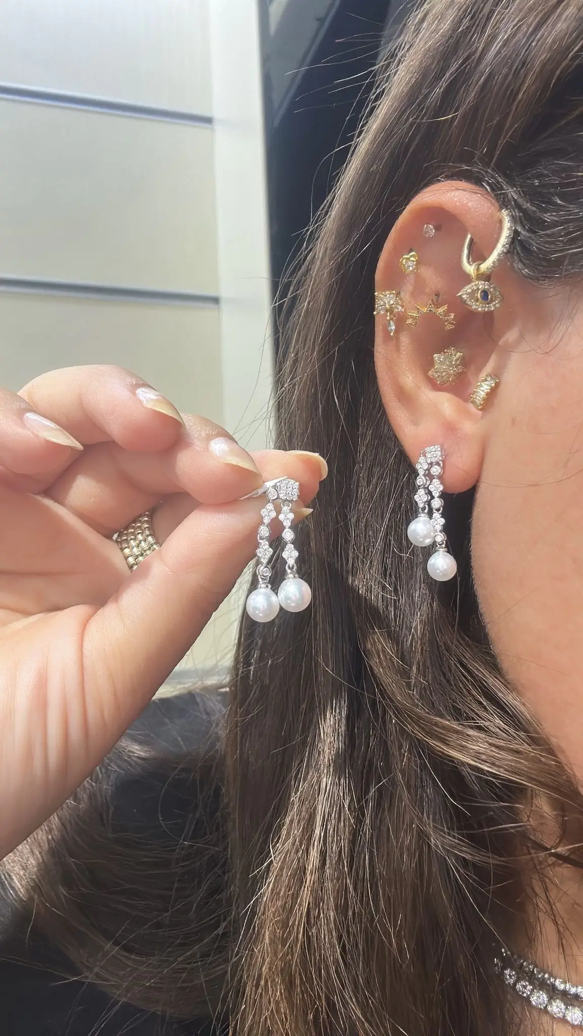 925 Ayar Gümüş İnci Sallantılı Taşlı İthal Küpe