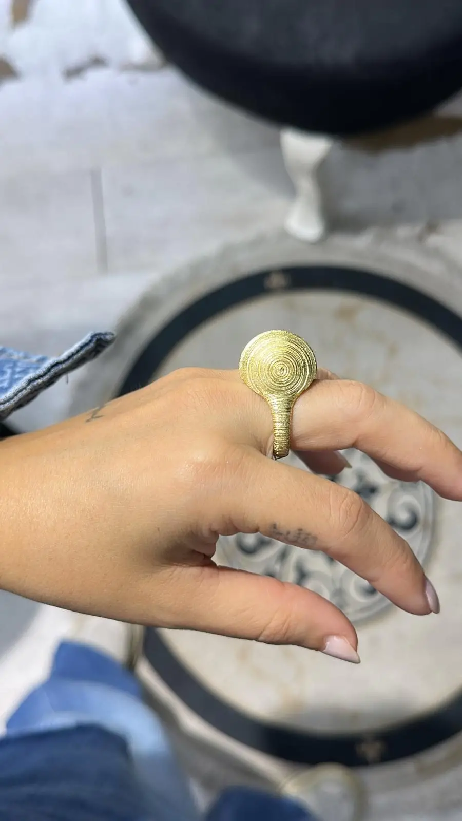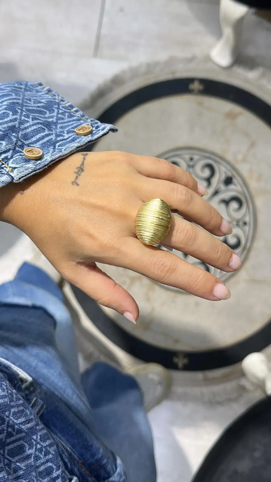 925 Ayar Gümüş Bombeli Taş Detay Altın Model Yüzük