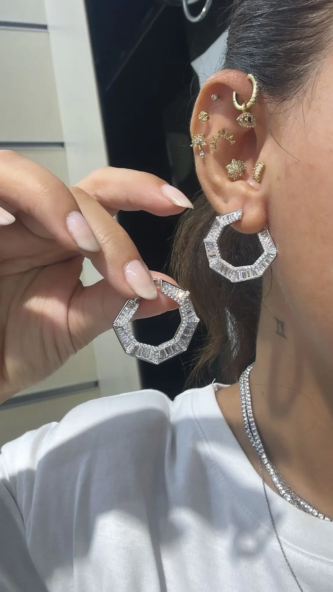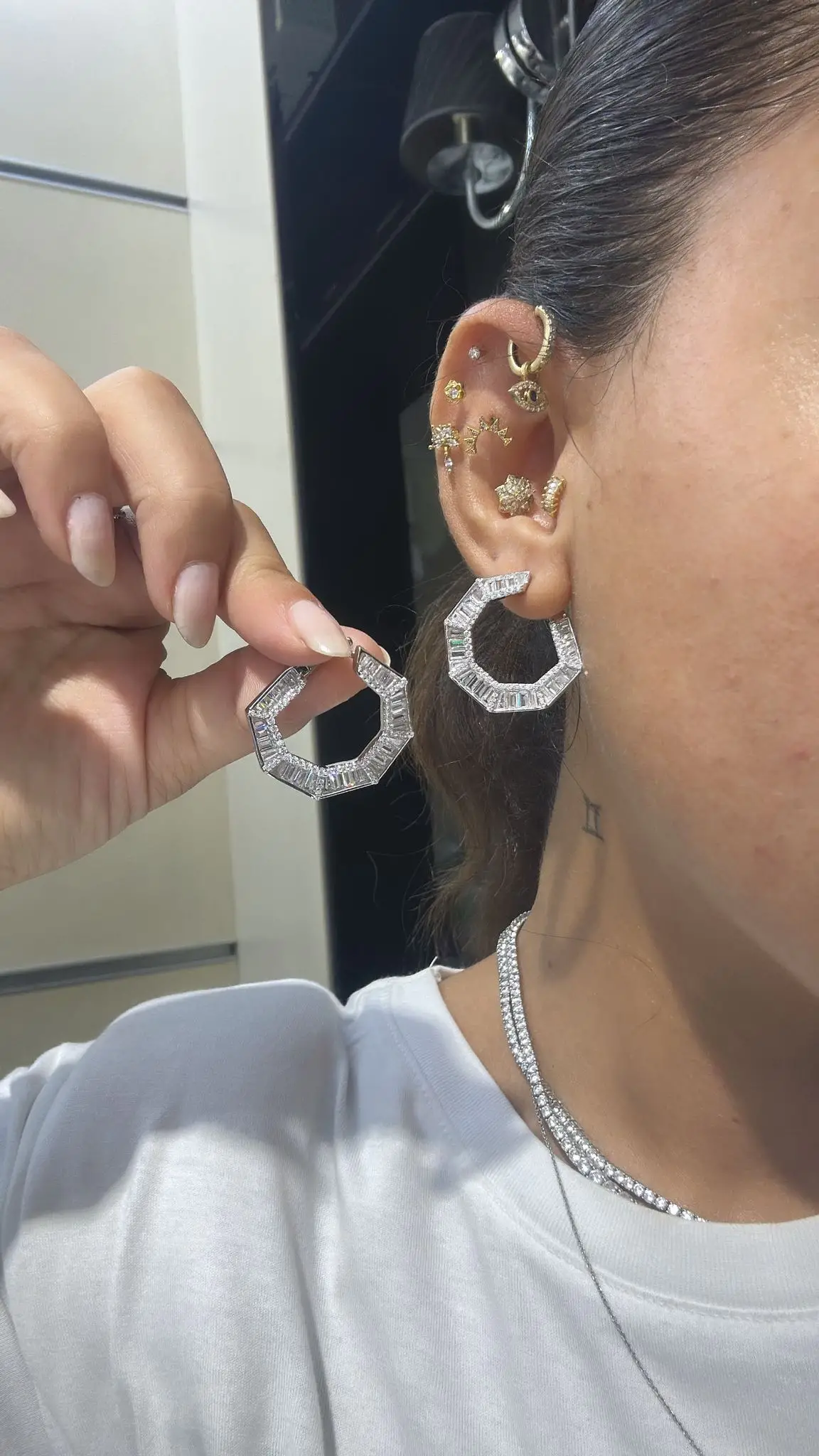 925 Ayar Gümüş Baget Taşlı Mücevher Tasarım Küpe