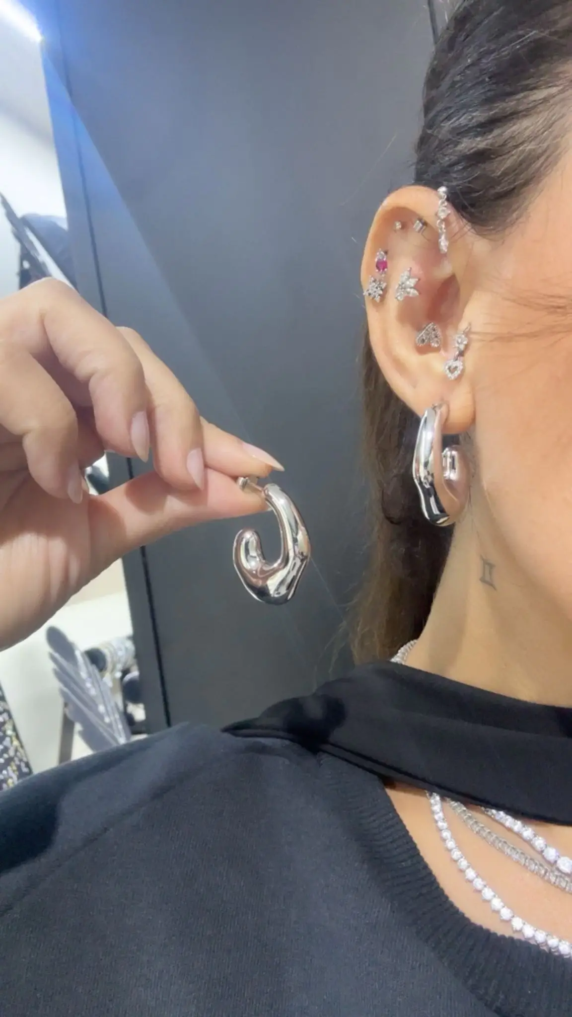 925 Ayar Gümüş Halka Geçmeli Çivili Küpe