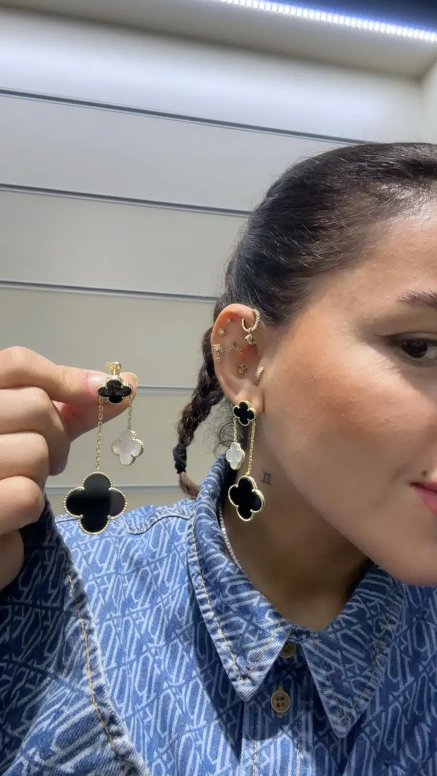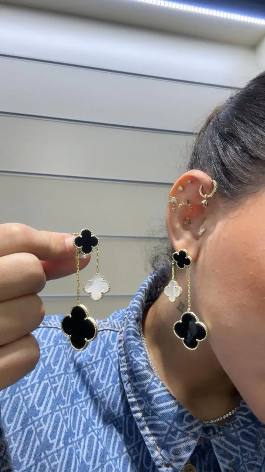 925 Ayar Gümüş İthal Marka Siyah Sedef Sallantılı Küpe