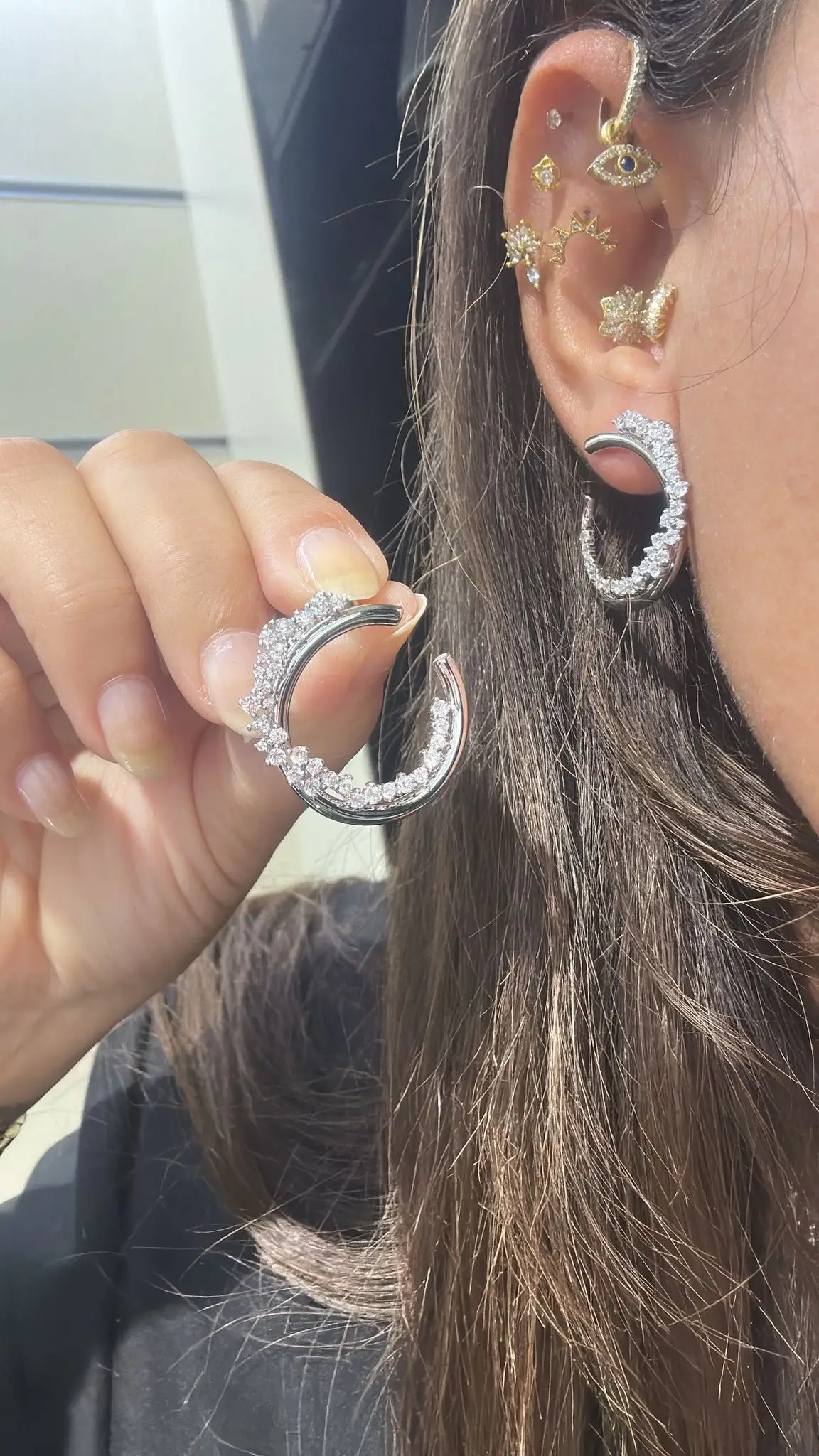 925 Ayar Gümüş Hilal Model Taşlı İthal Küpe
