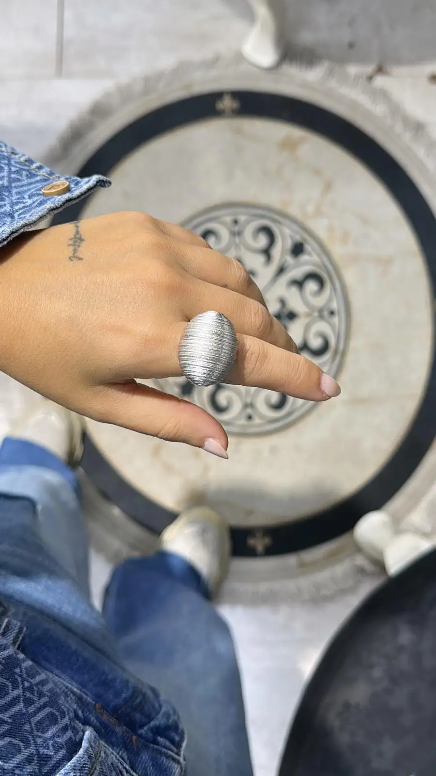 925 Ayar Gümüş Bombeli Taş Detay Yüzük