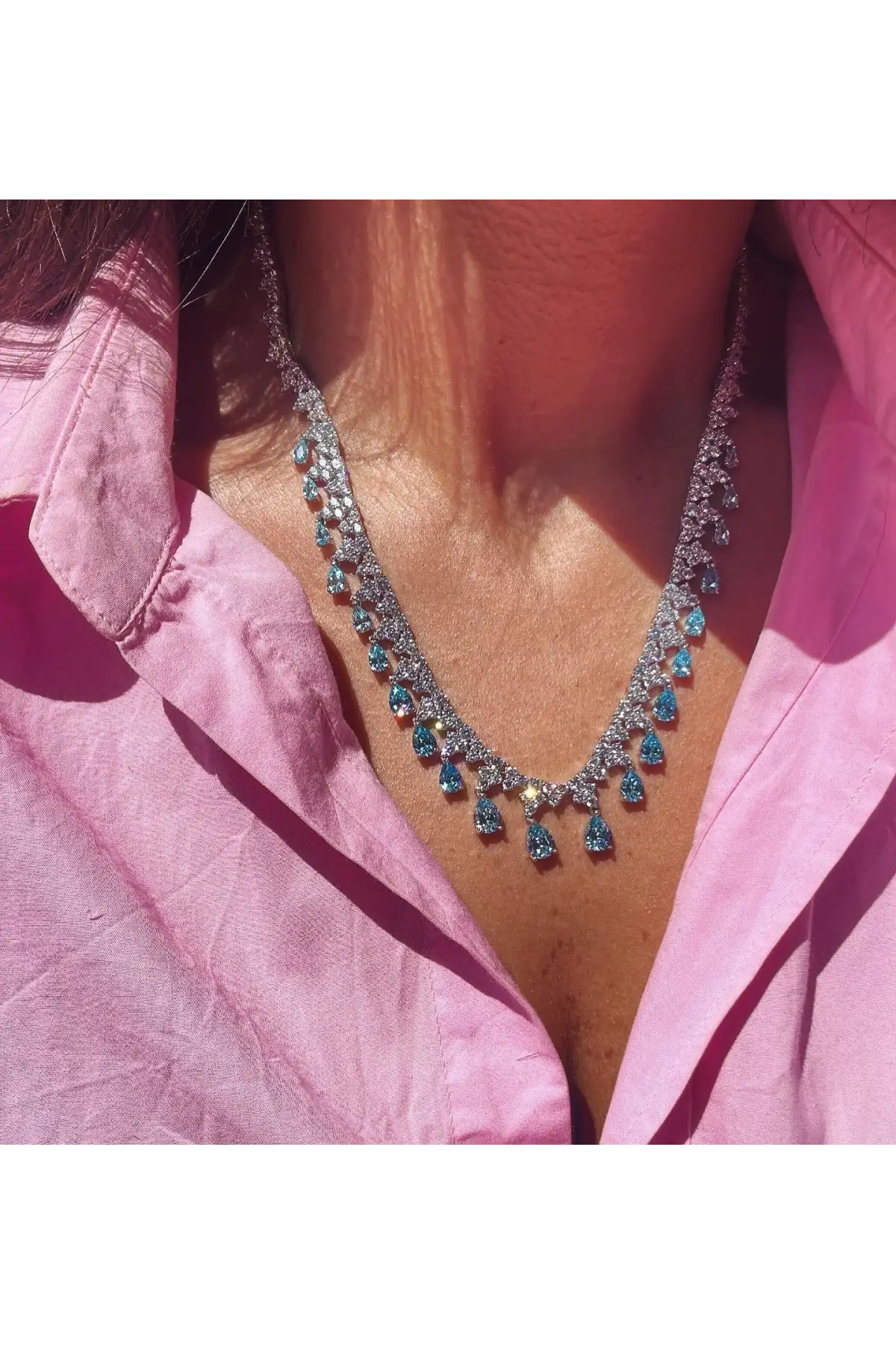 925 Ayar Gümüş Mavi Taşlı İthal Özel Seri Kolye