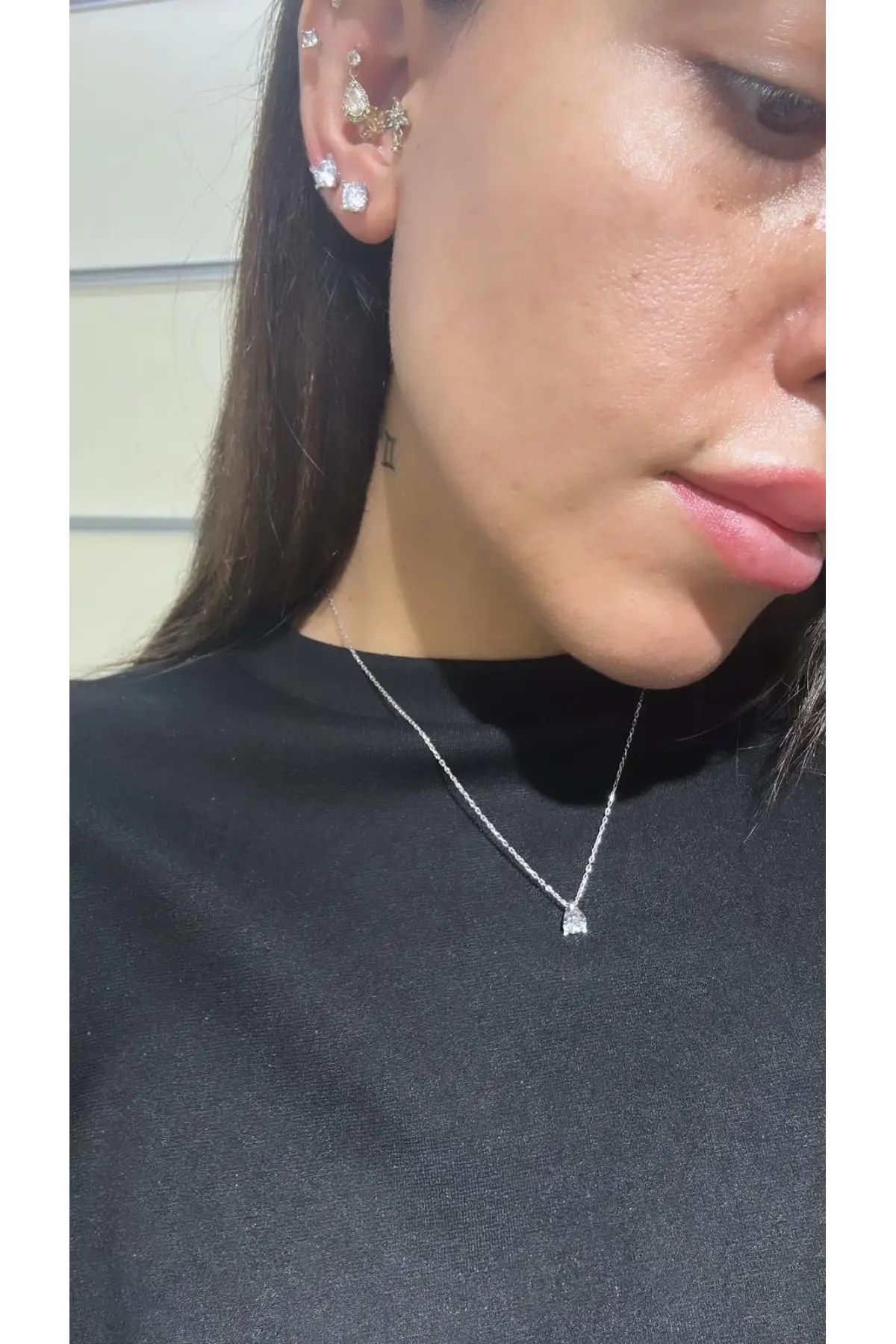 925 Ayar Gümüş Pırlanta Montür Taşlı Kolye