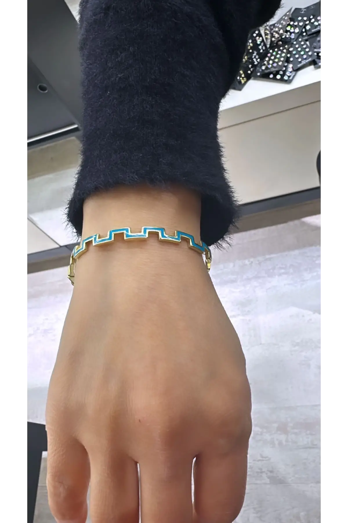 925 Ayar Gümüş Orjinal Mineli Zikzaklı Kelepçe Bileklik
