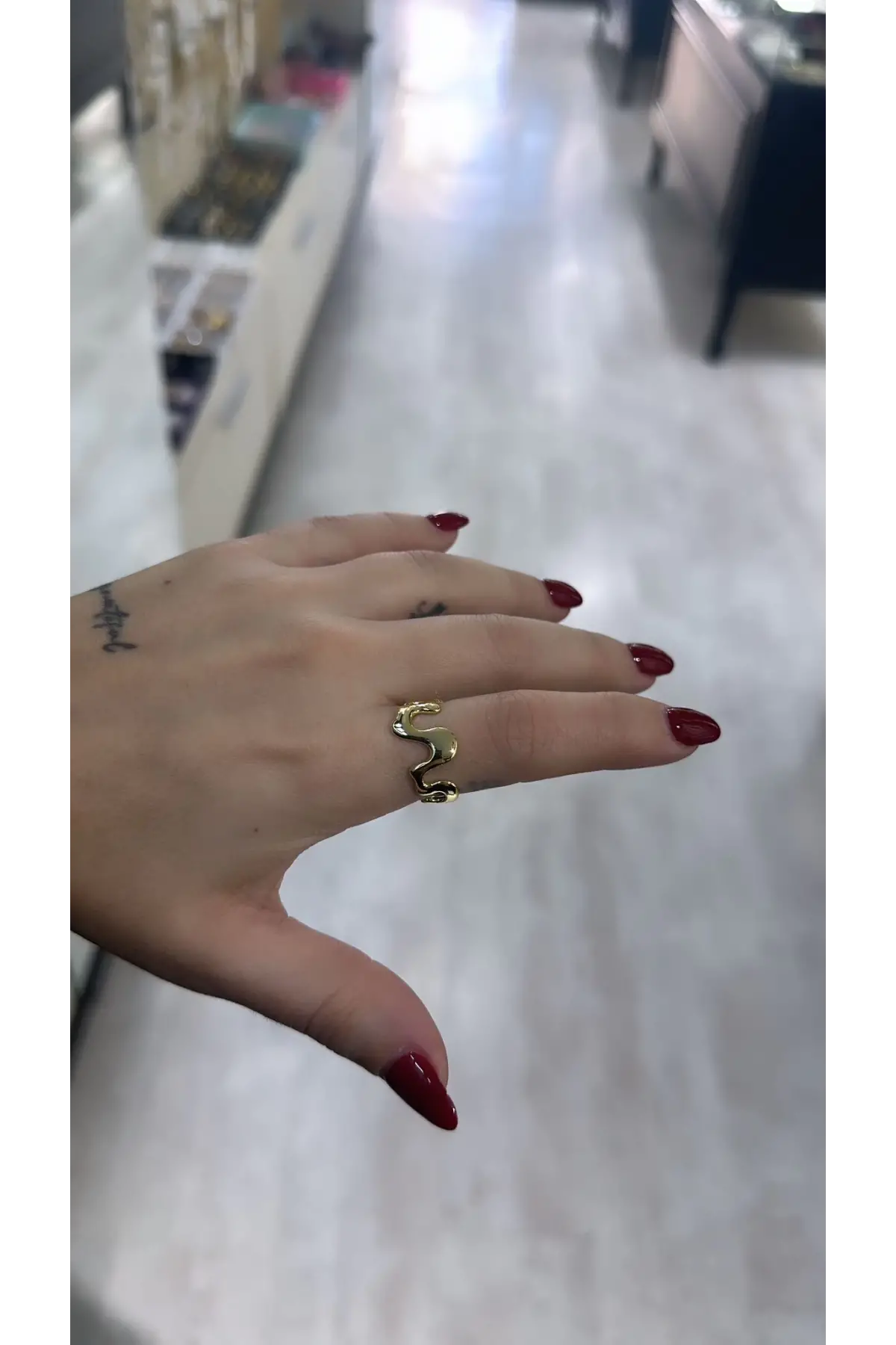 925 Ayar Gümüş Zikzak Model Gold Yüzük