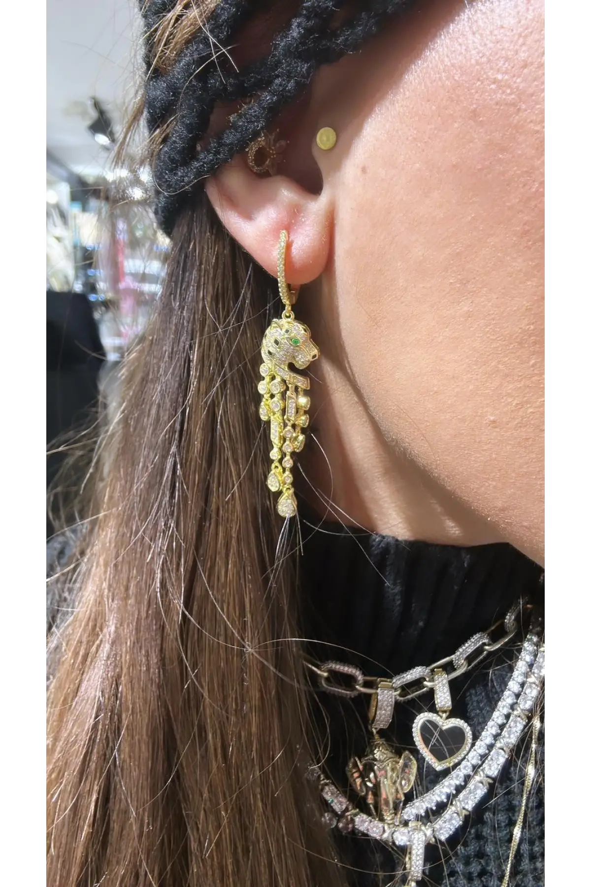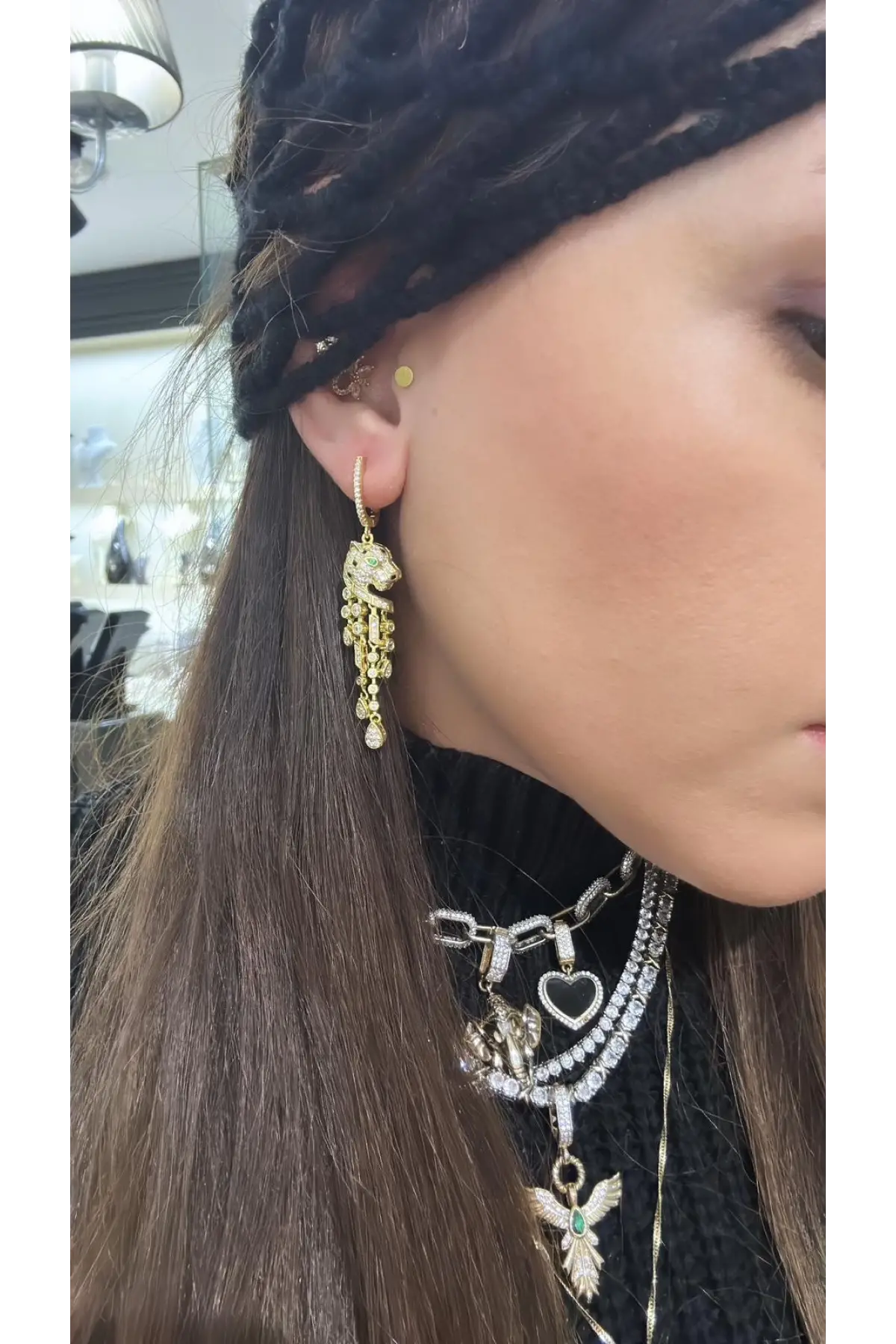 925 Ayar Gümüş Kaplanlı Sallantılı Vip Küpe