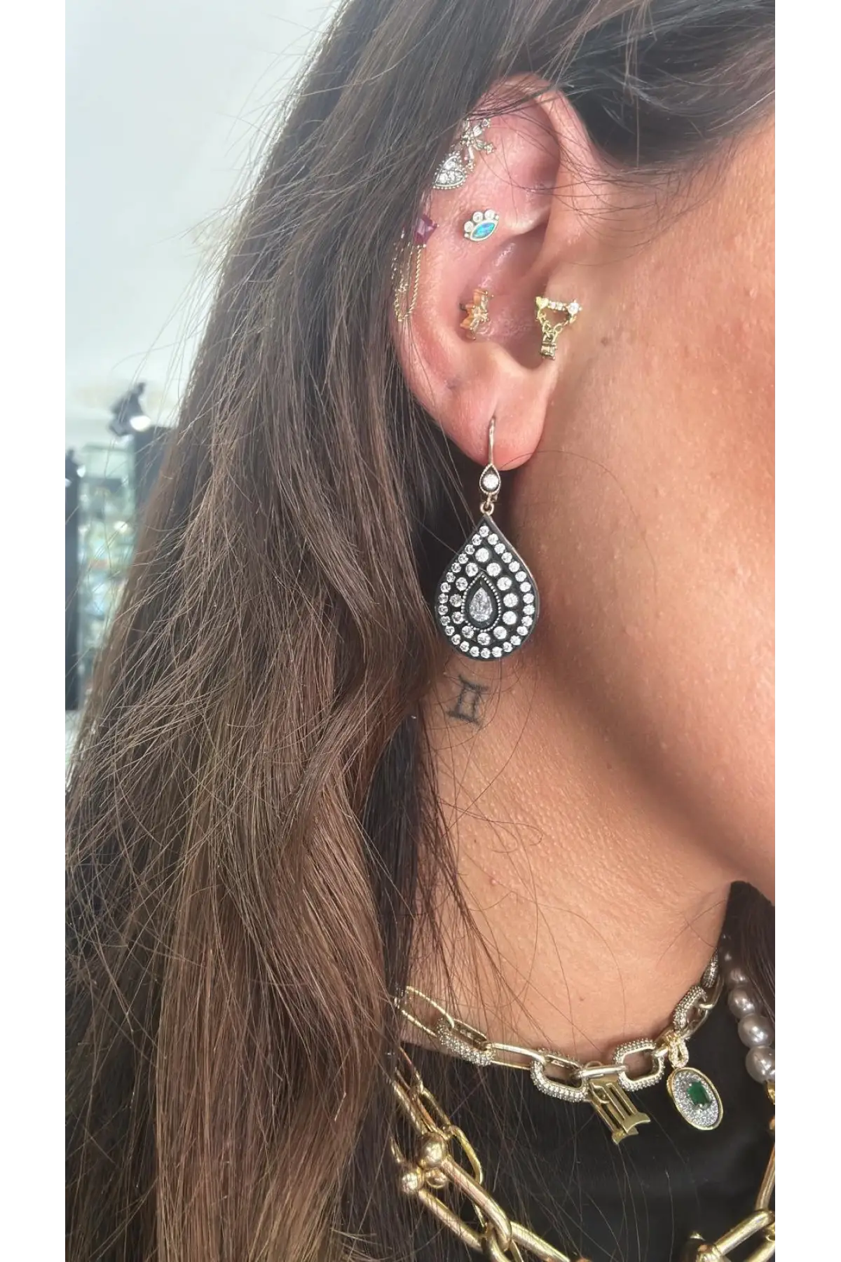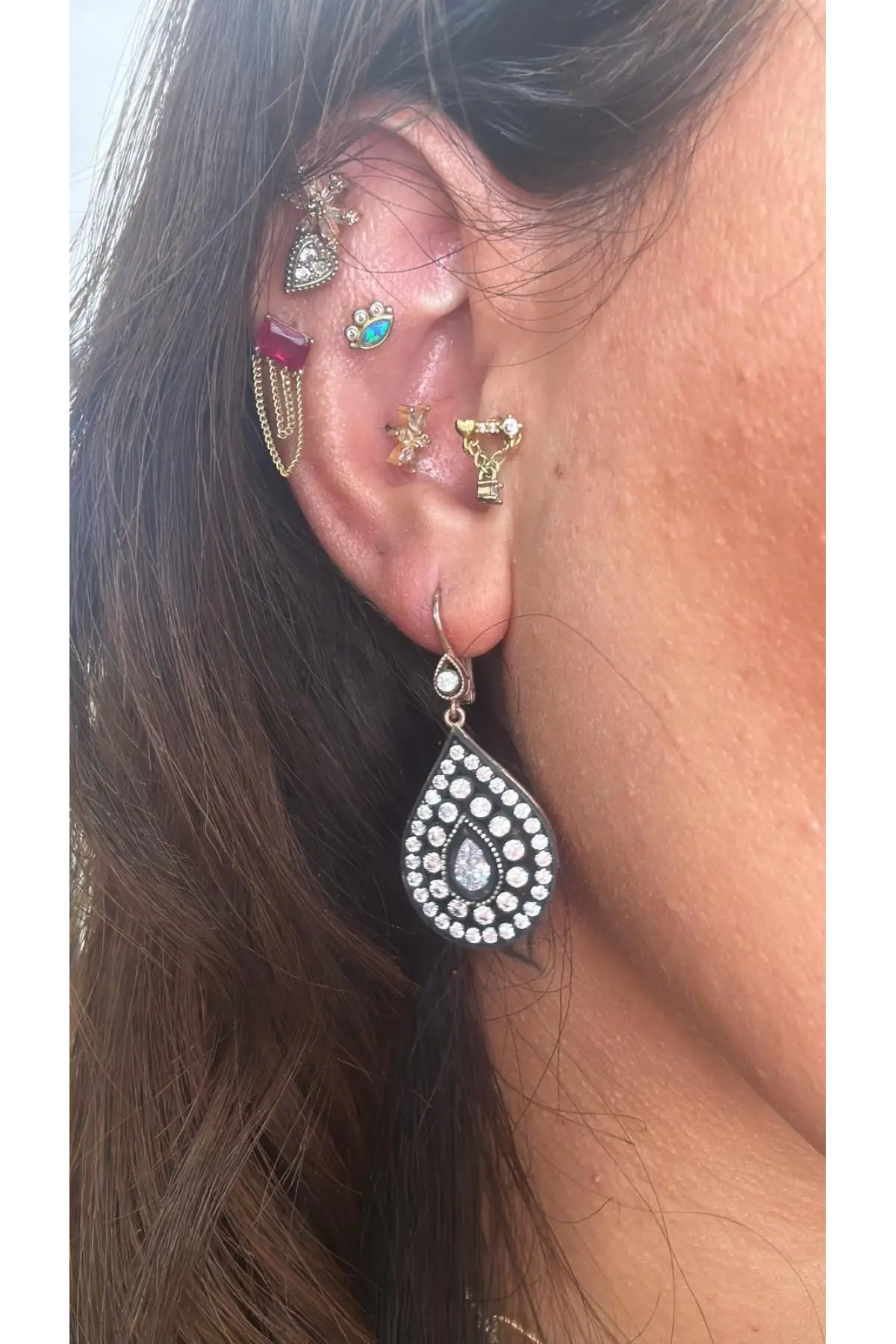 925 Ayar Gümüş Damla Model İce Cut Taşı Küpe