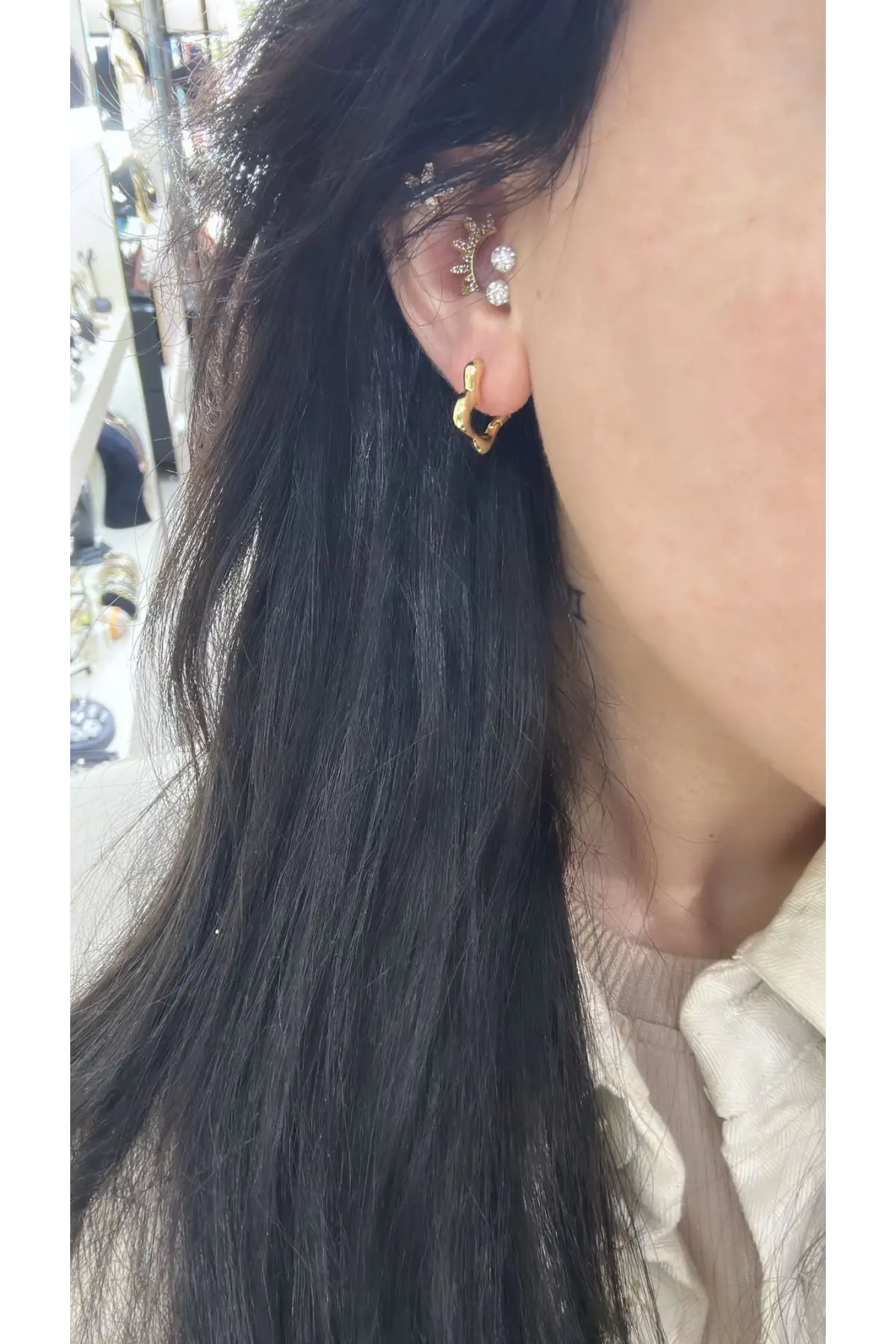 925 Ayar Gümüş Altın Yaldız Şekilli Halka Küpe