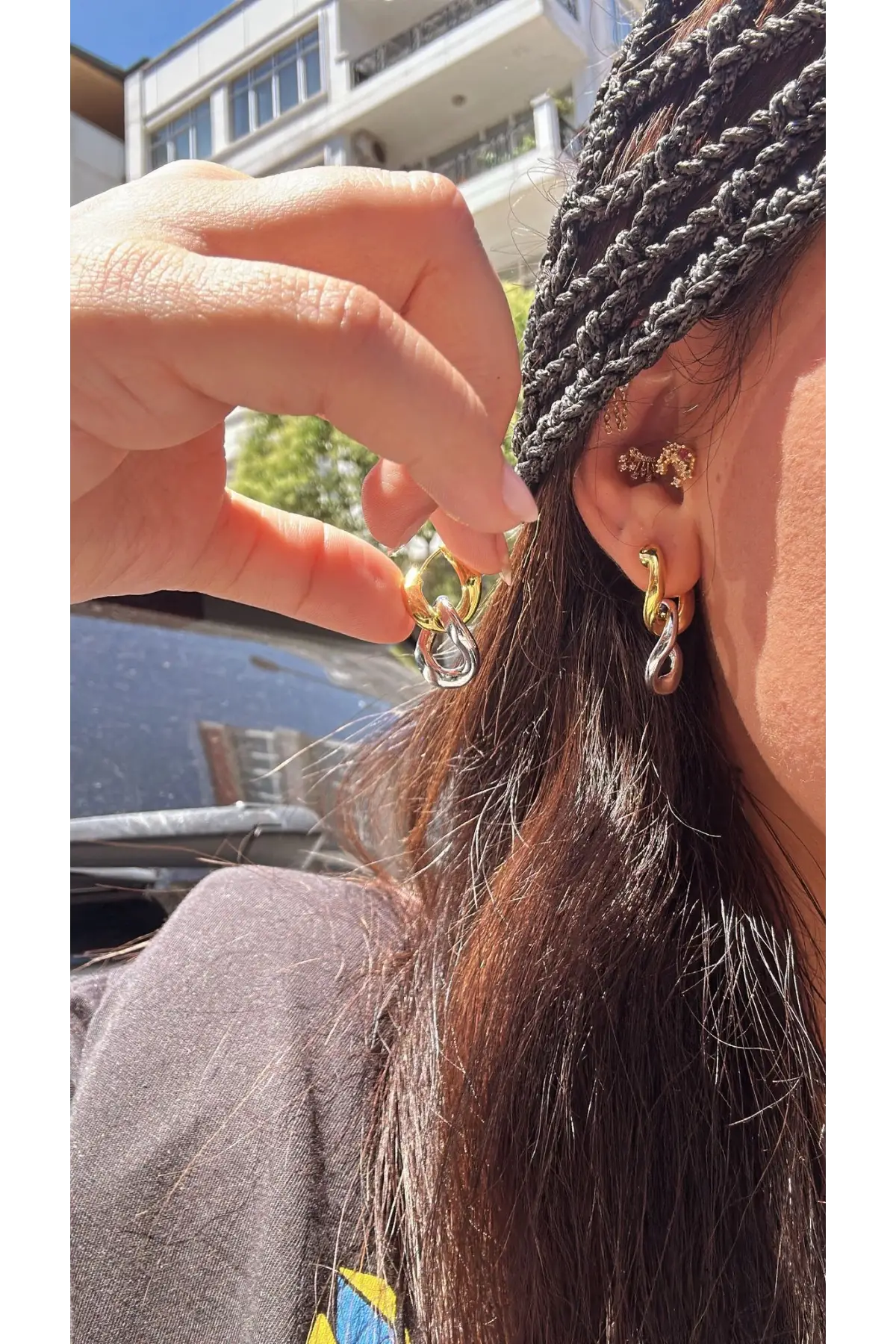 925 Ayar Gümüş İthal Marka İki Renk İç İçe Halka Küpe