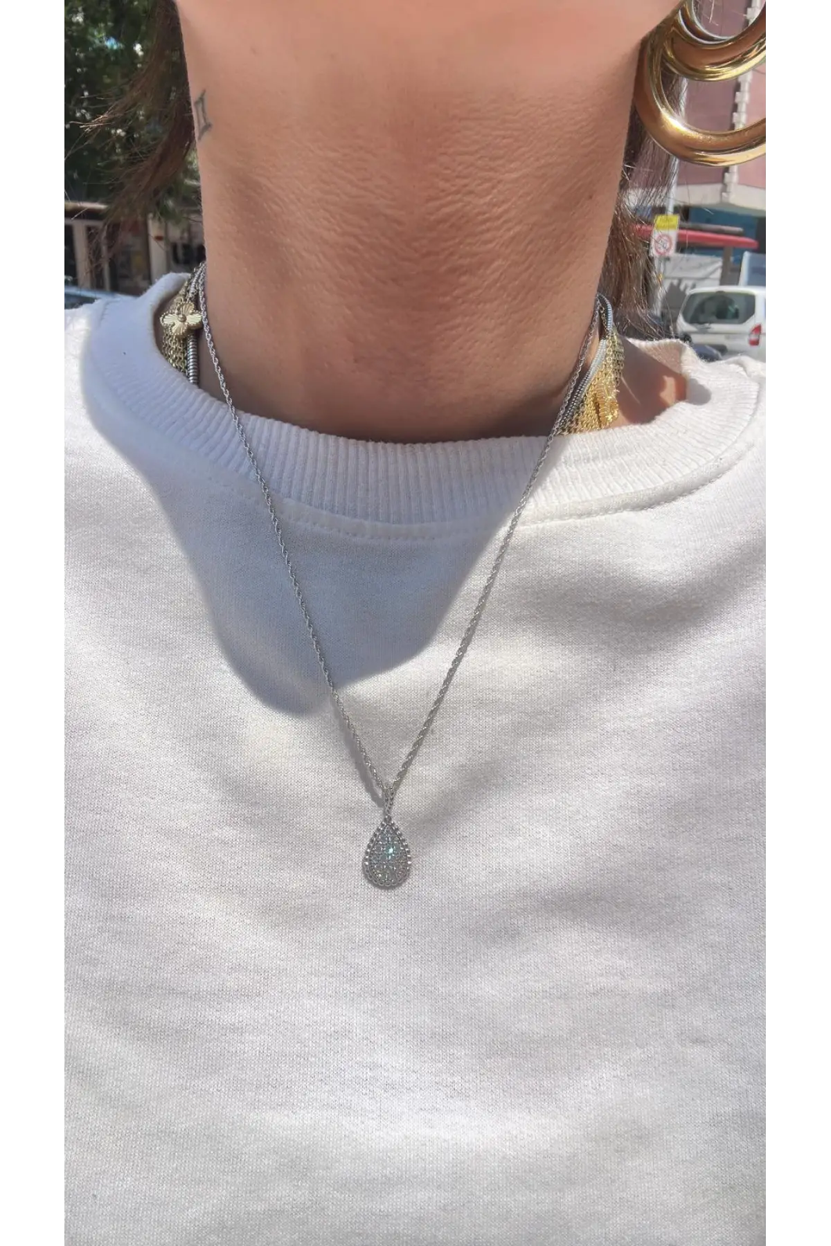 925 Ayar Gümüş İthal Marka Damla Taşlı Silver Kolye
