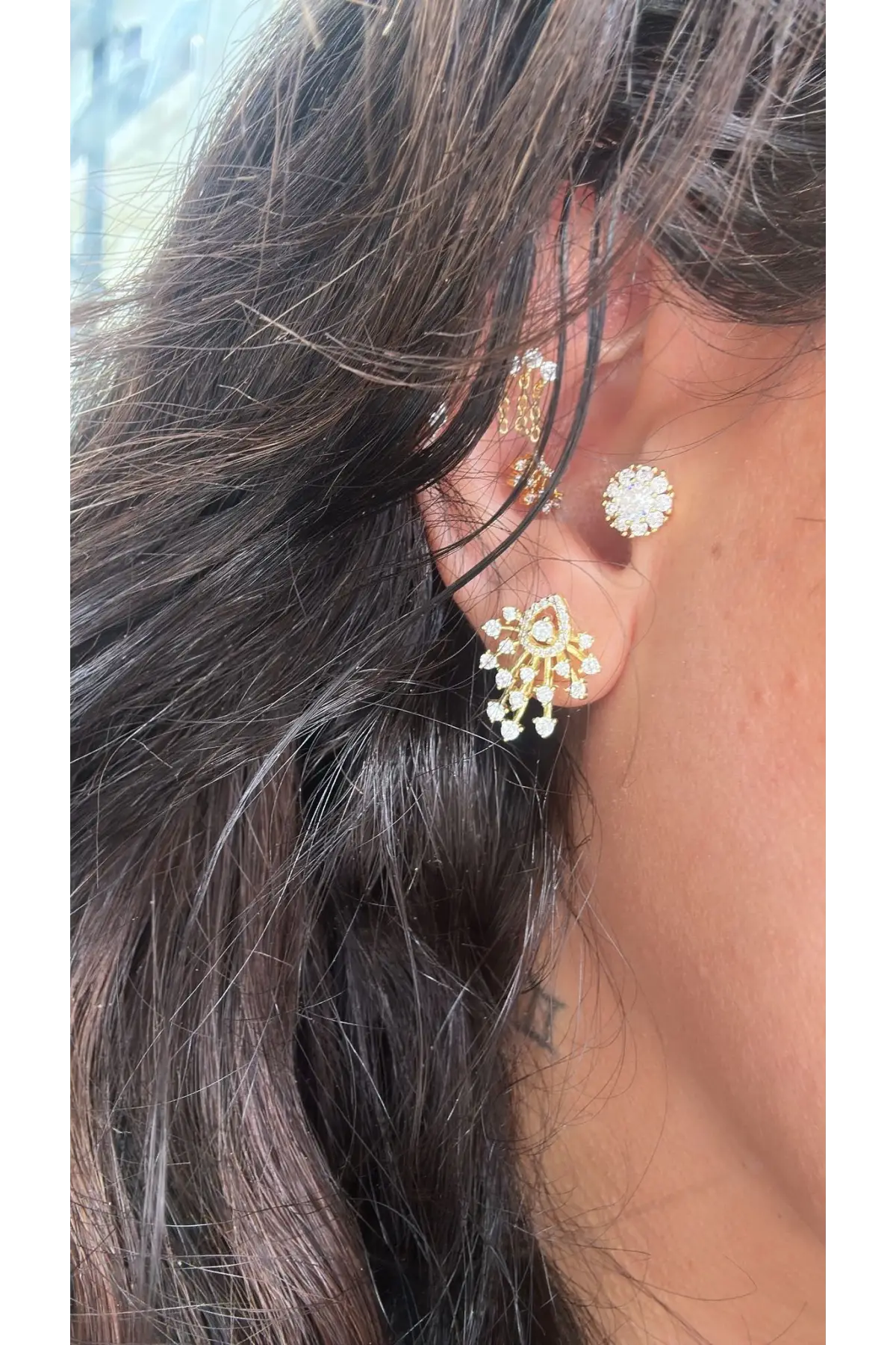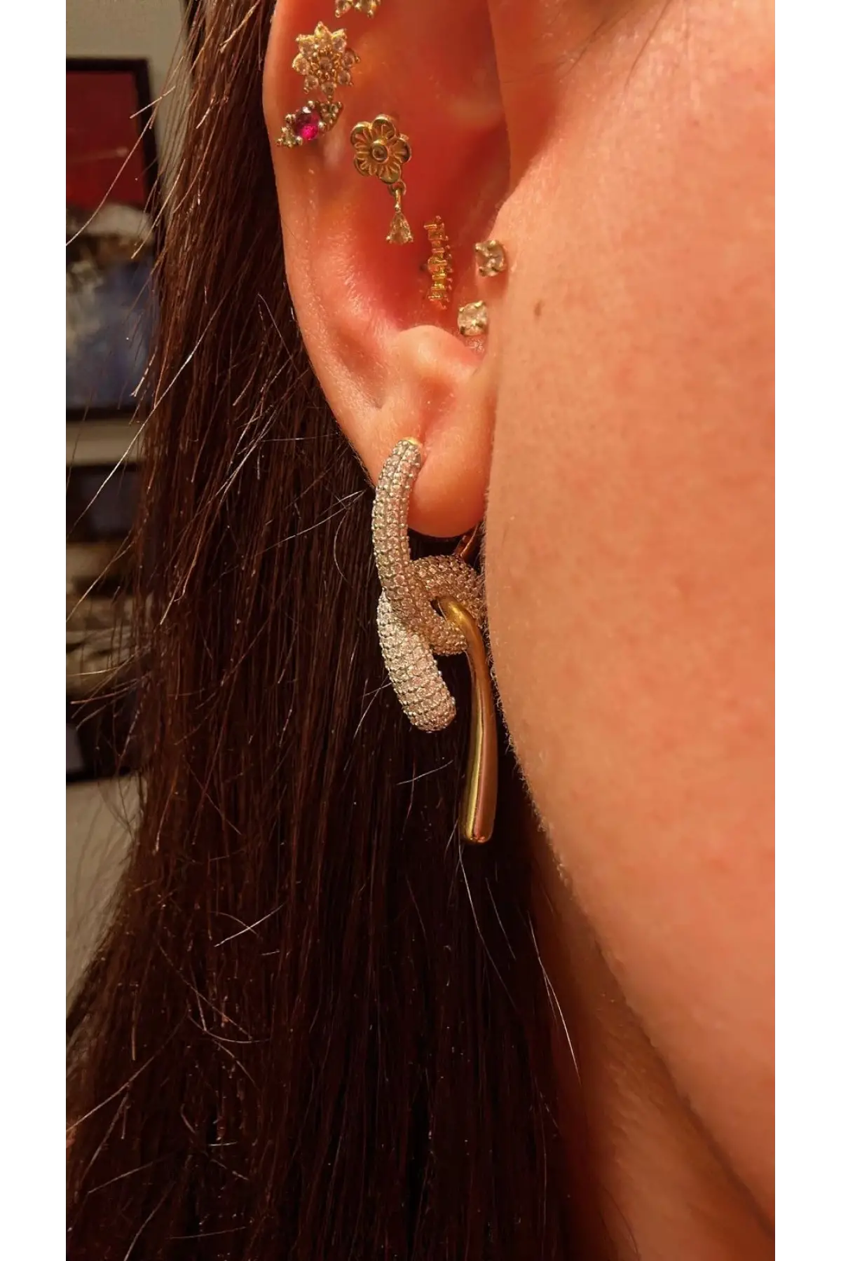 925 Ayar Gümüş Ok Taşlı Gold Küpe
