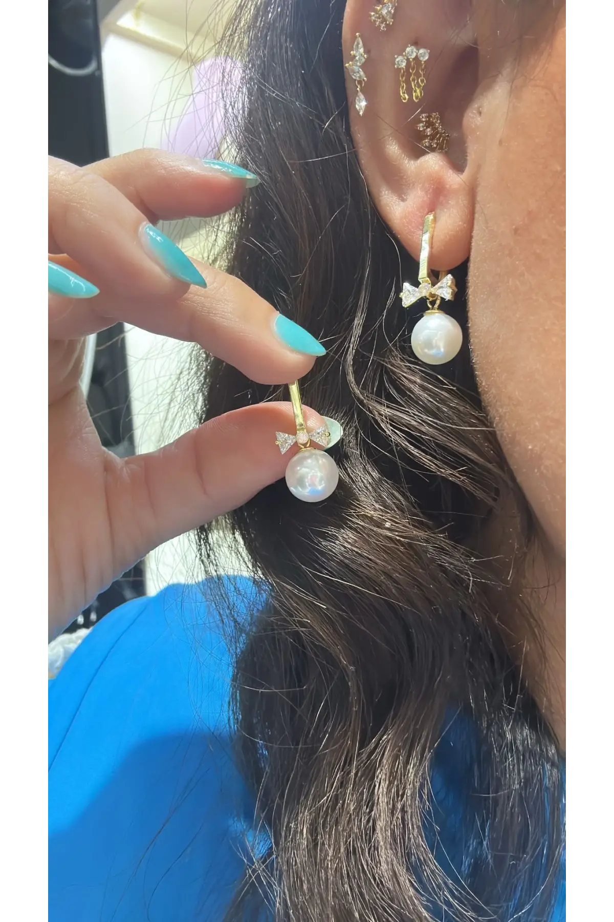 925 Ayar Gümüş İnci Model Kurdele Taşlı Küpe