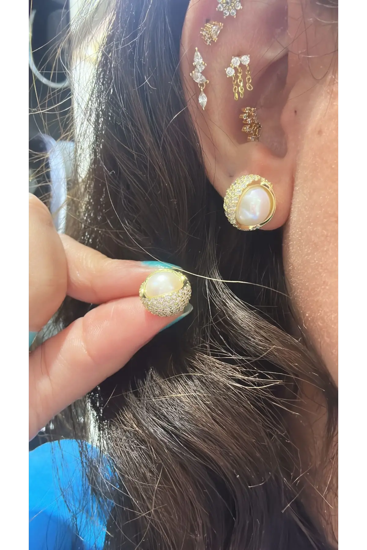 925 Ayar Gümüş İnci Detay Gold Küpe