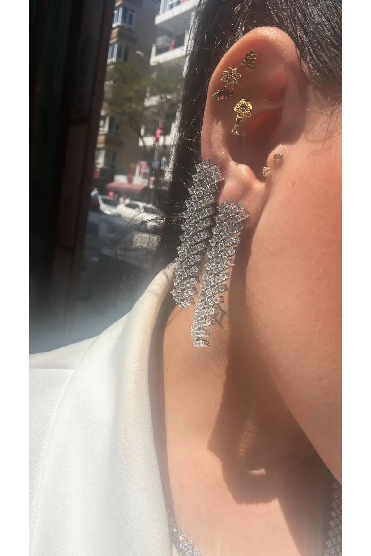 925 Ayar Gümüş Taşlı Sallantılı Mücevher Tasarım Küpe
