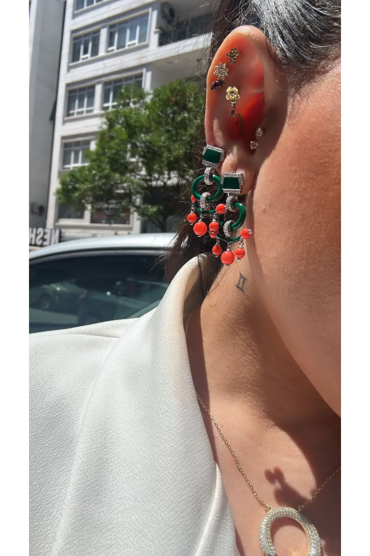 925 Ayar Gümüş Zümrüt Renk Mücevher Tasarım Vip Kolye