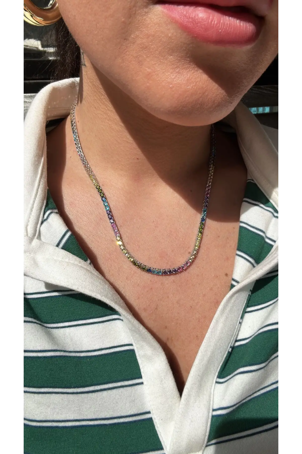 925 Ayar Gümüş İthal Renkli 3 MM Taşlı Trend Su Yolu Kolye