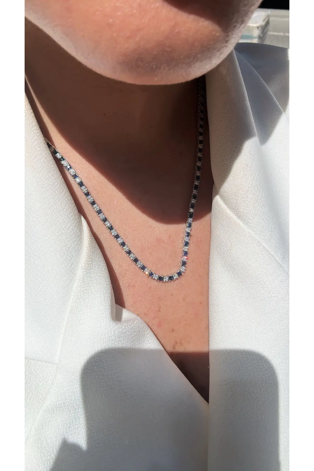 925 Ayar Gümüş Mavi Beyaz Taş Su Yolu Kolye