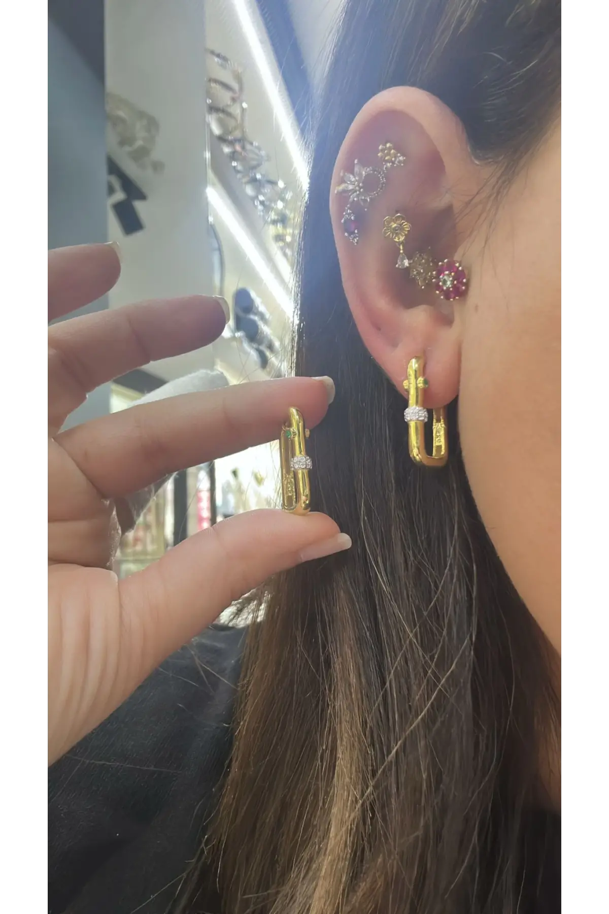 925 Ayar Gümüş Gold Halka Vidalı Küpe