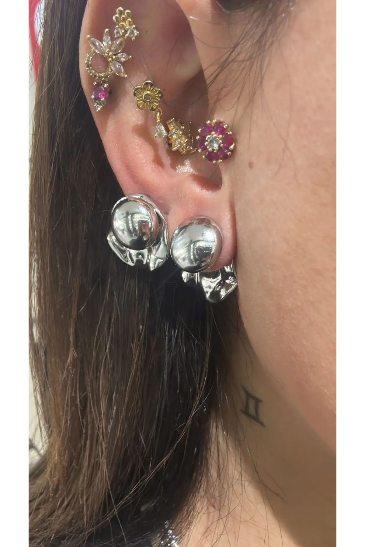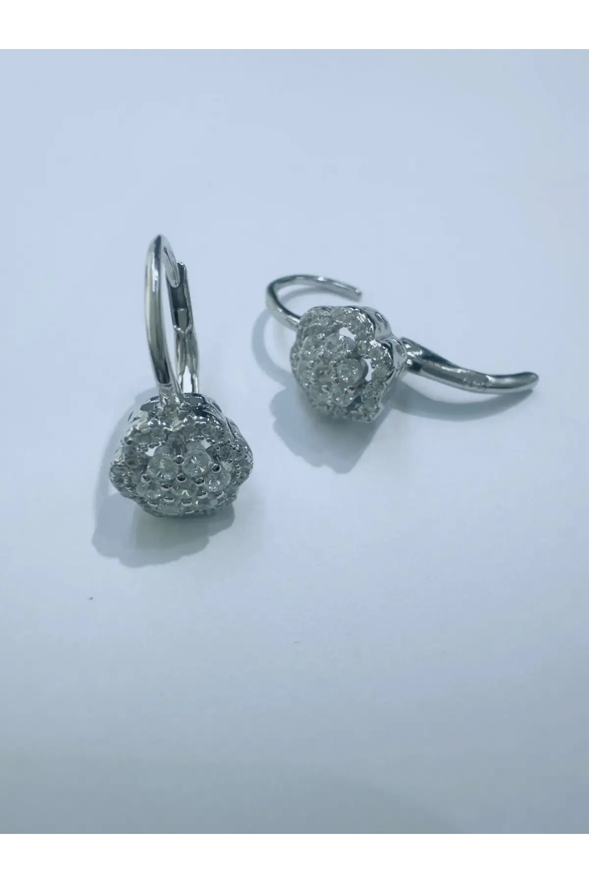 925 Ayar Gümüş Pırlanta Montür Çiçek Model Küpe