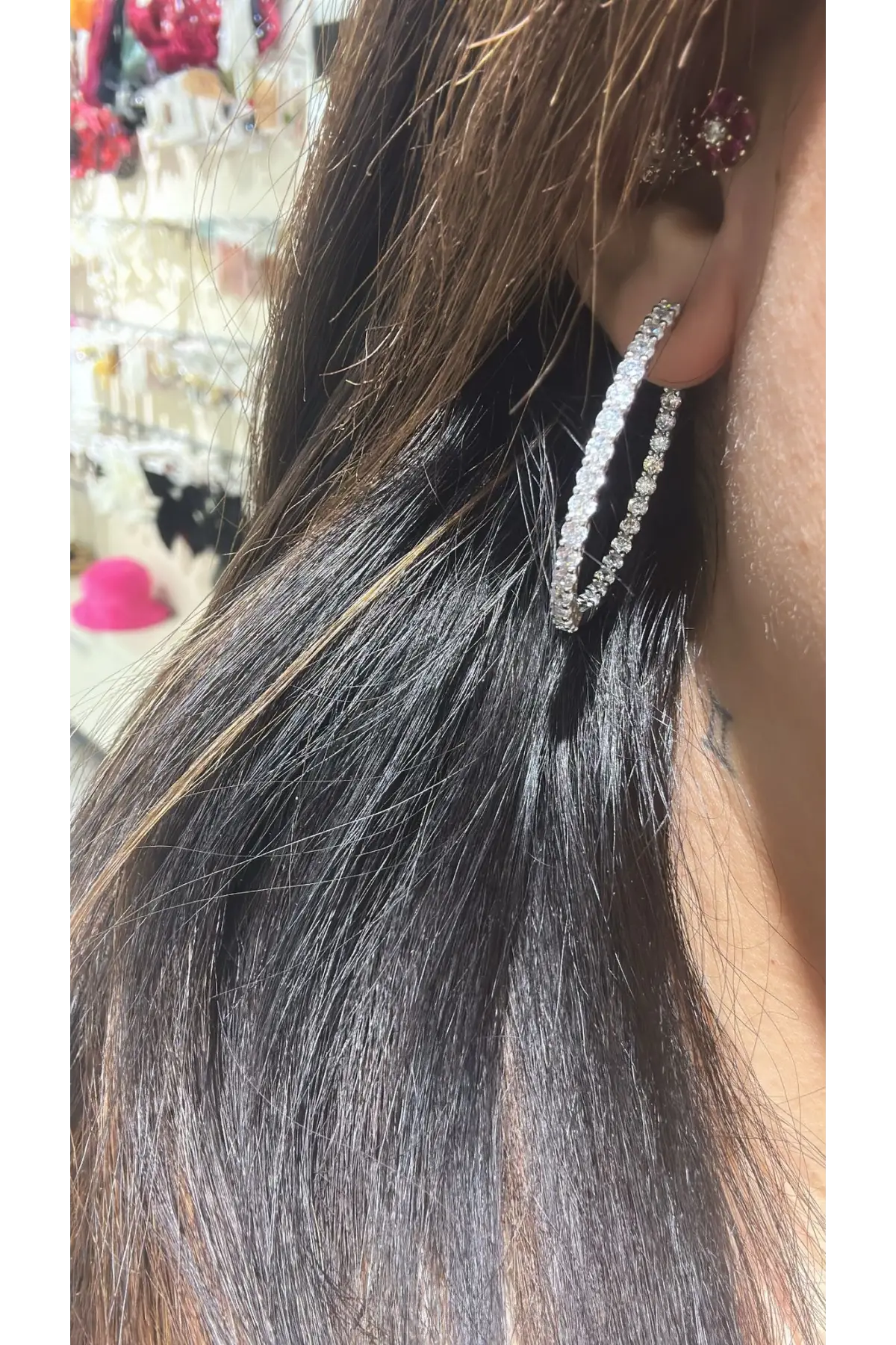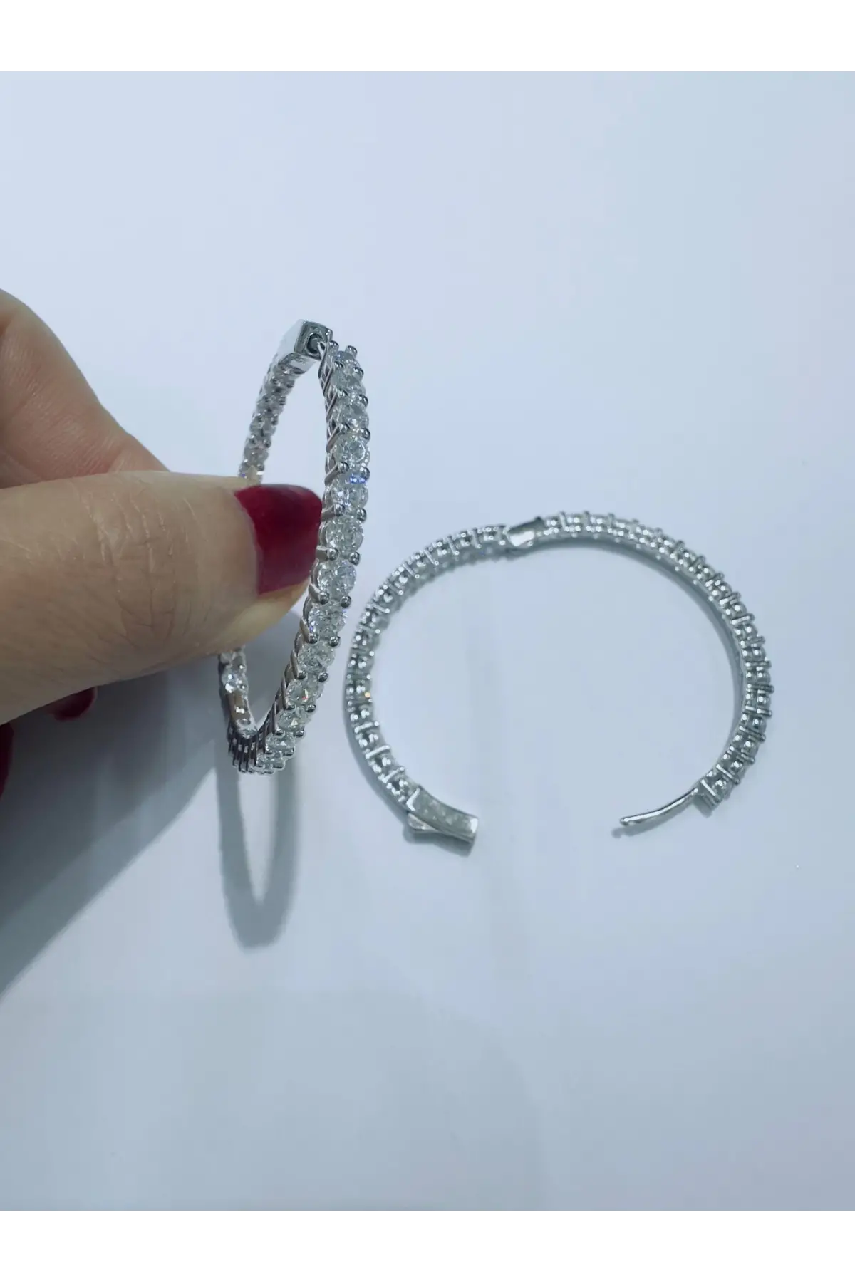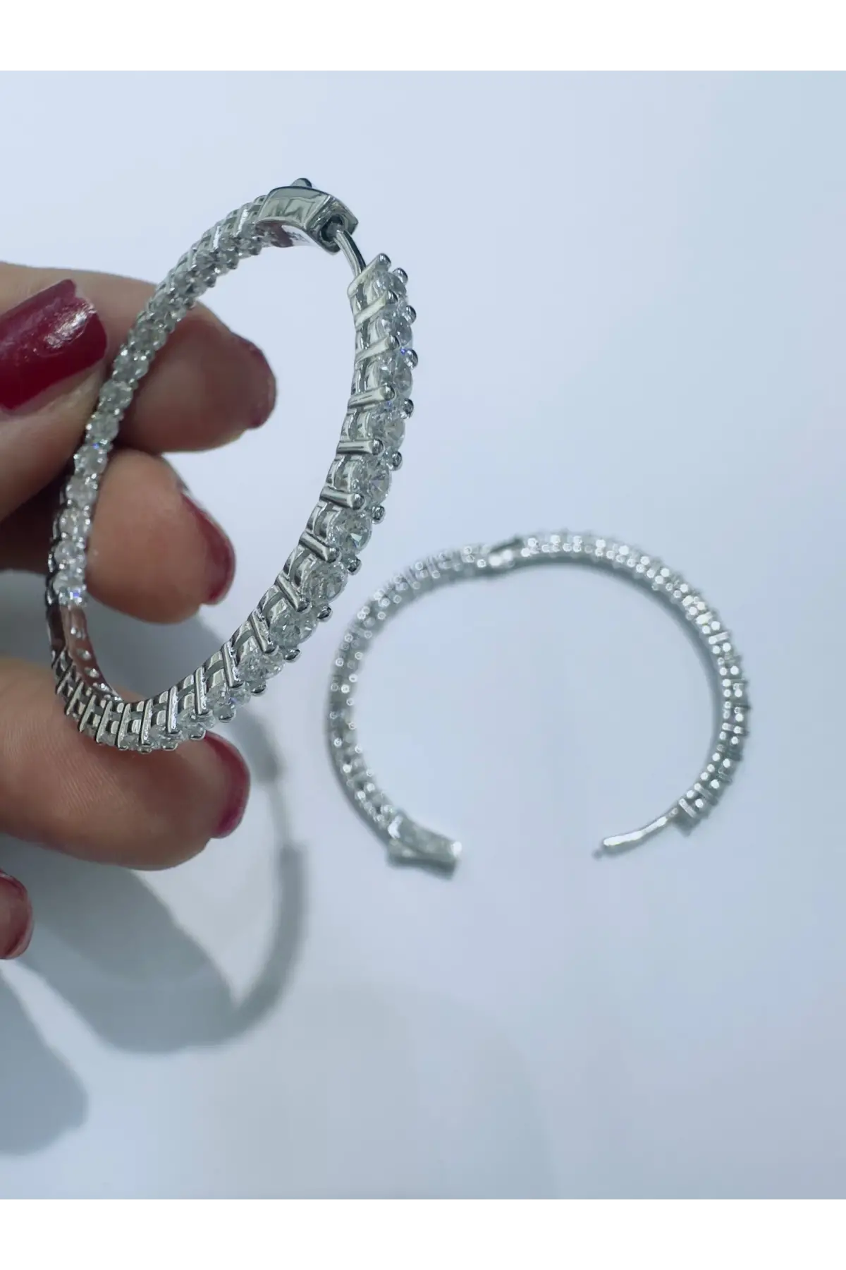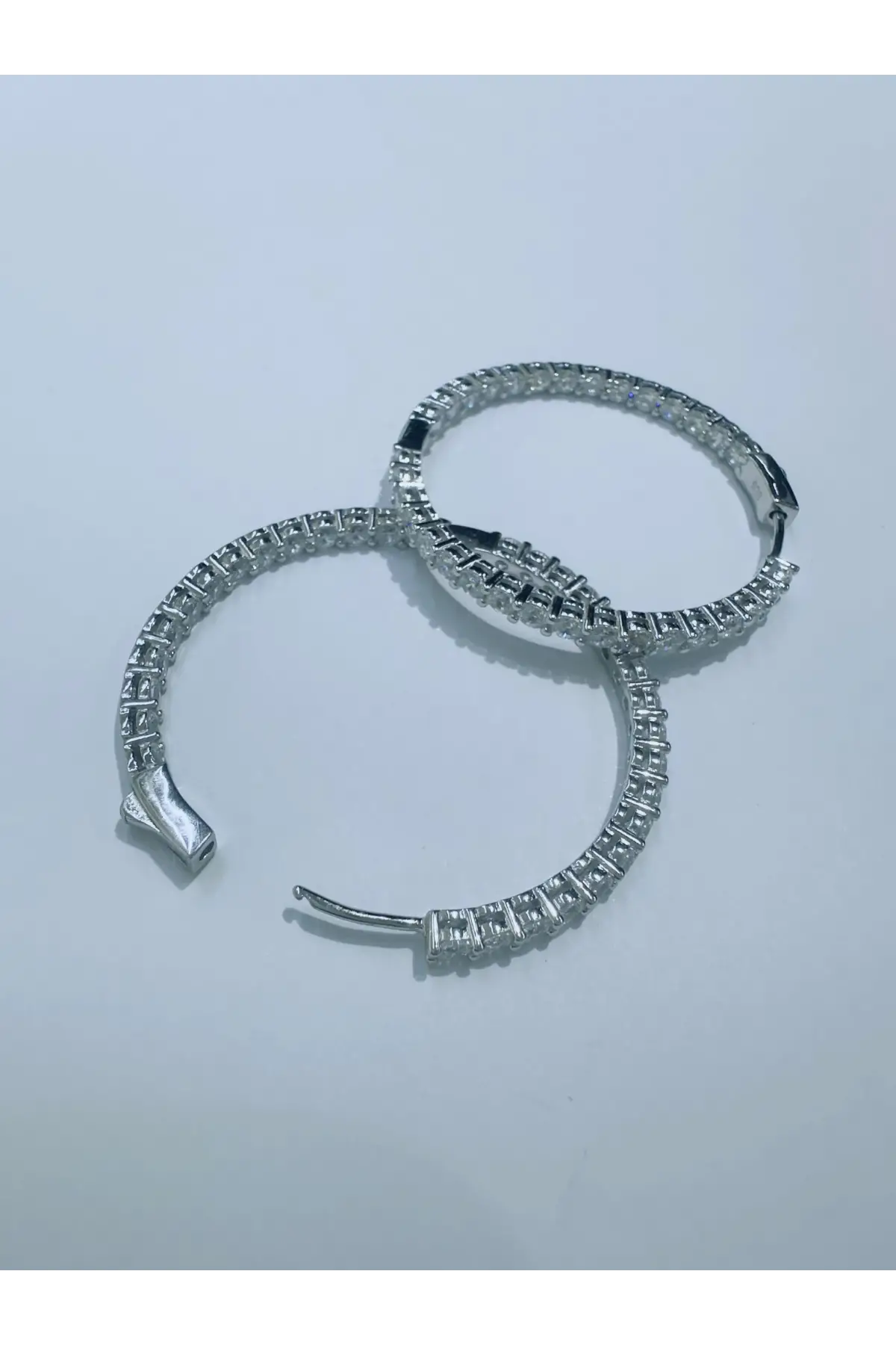 925 Ayar Gümüş Sıra Taşlı Halka İthal Küpe