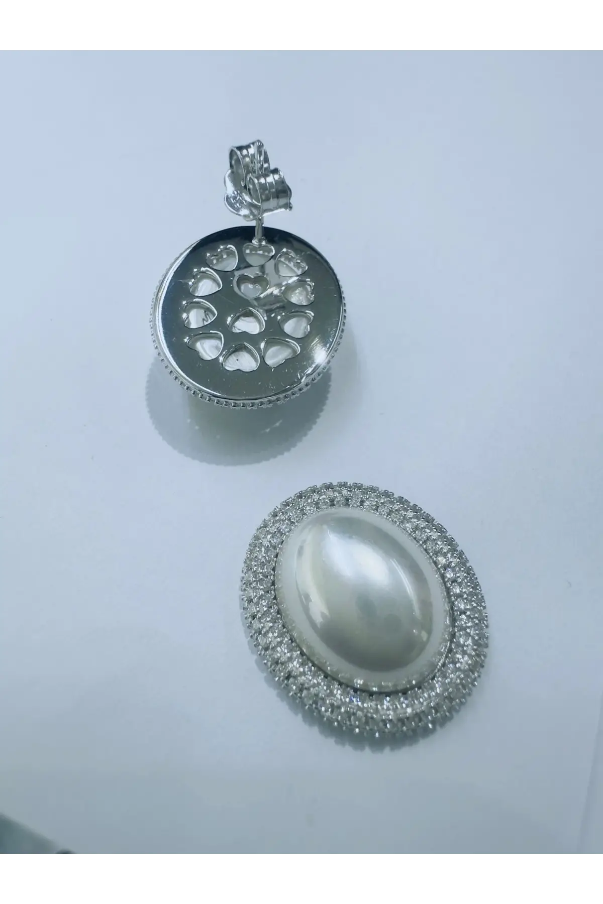 925 Ayar Gümüş Oval İncili Vidalı Küpe