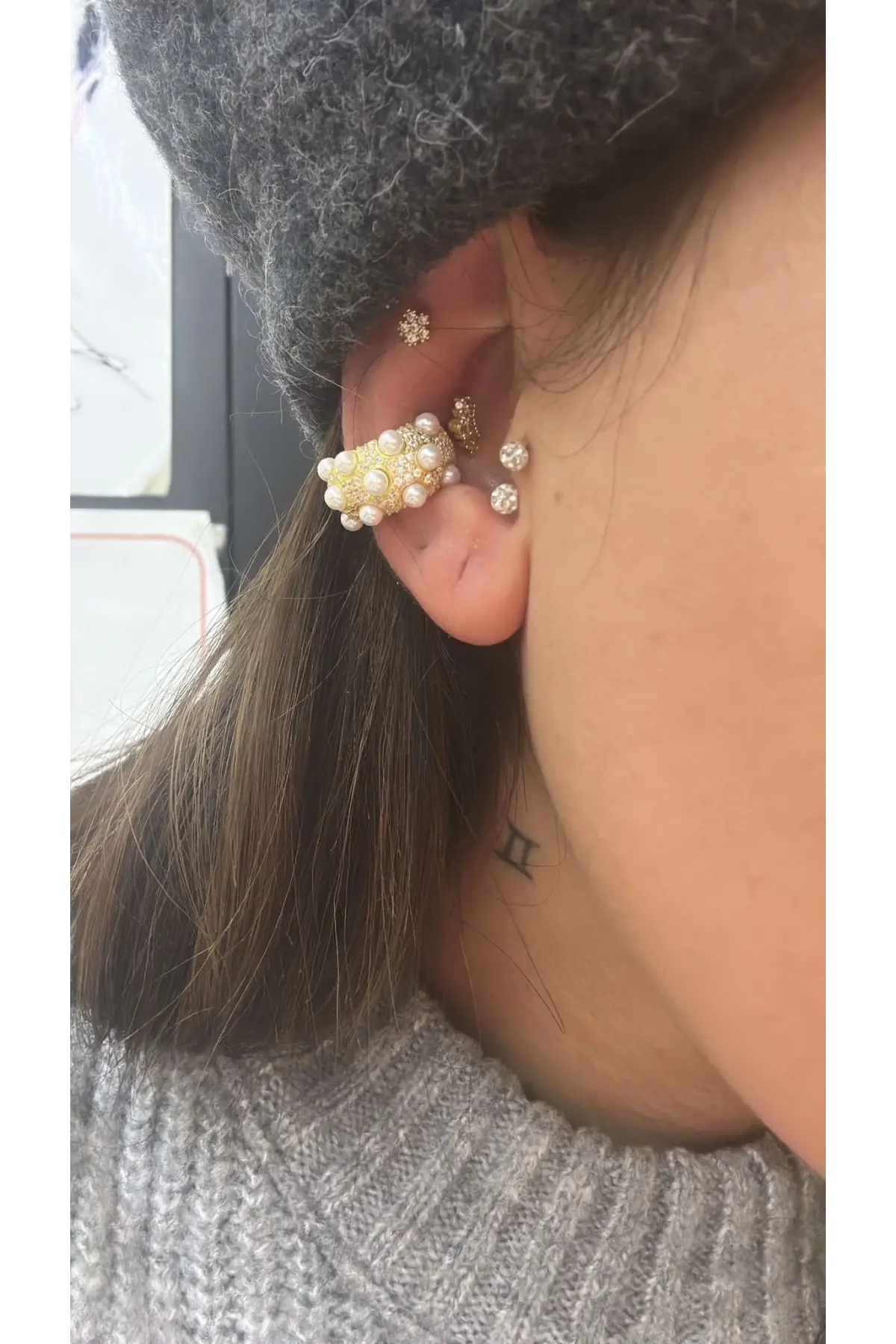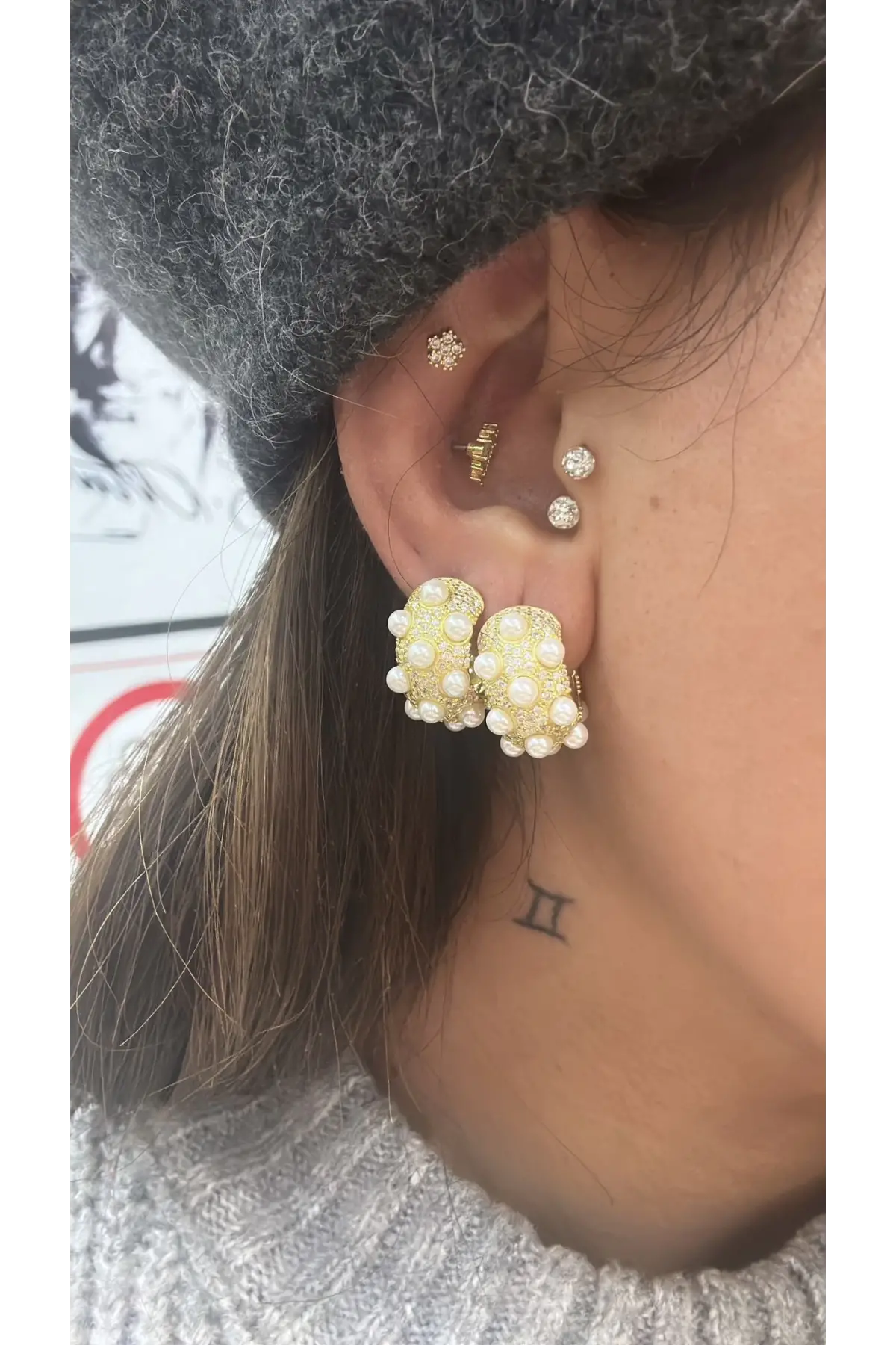 925 Ayar Gümüş Gold İncili Bombeli Küpe