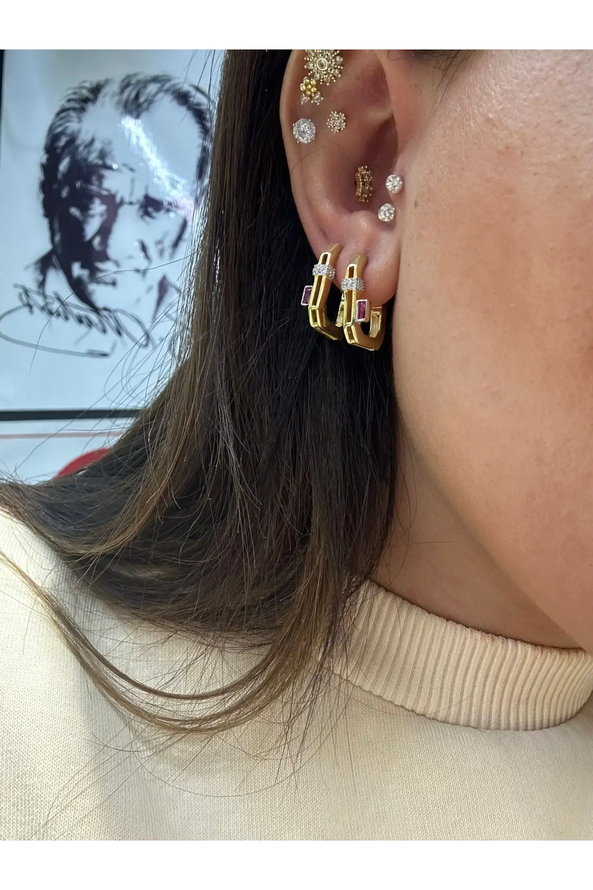 925 Ayar Gümüş Kare Kenarı Renkli Taşlı Trend Küpe