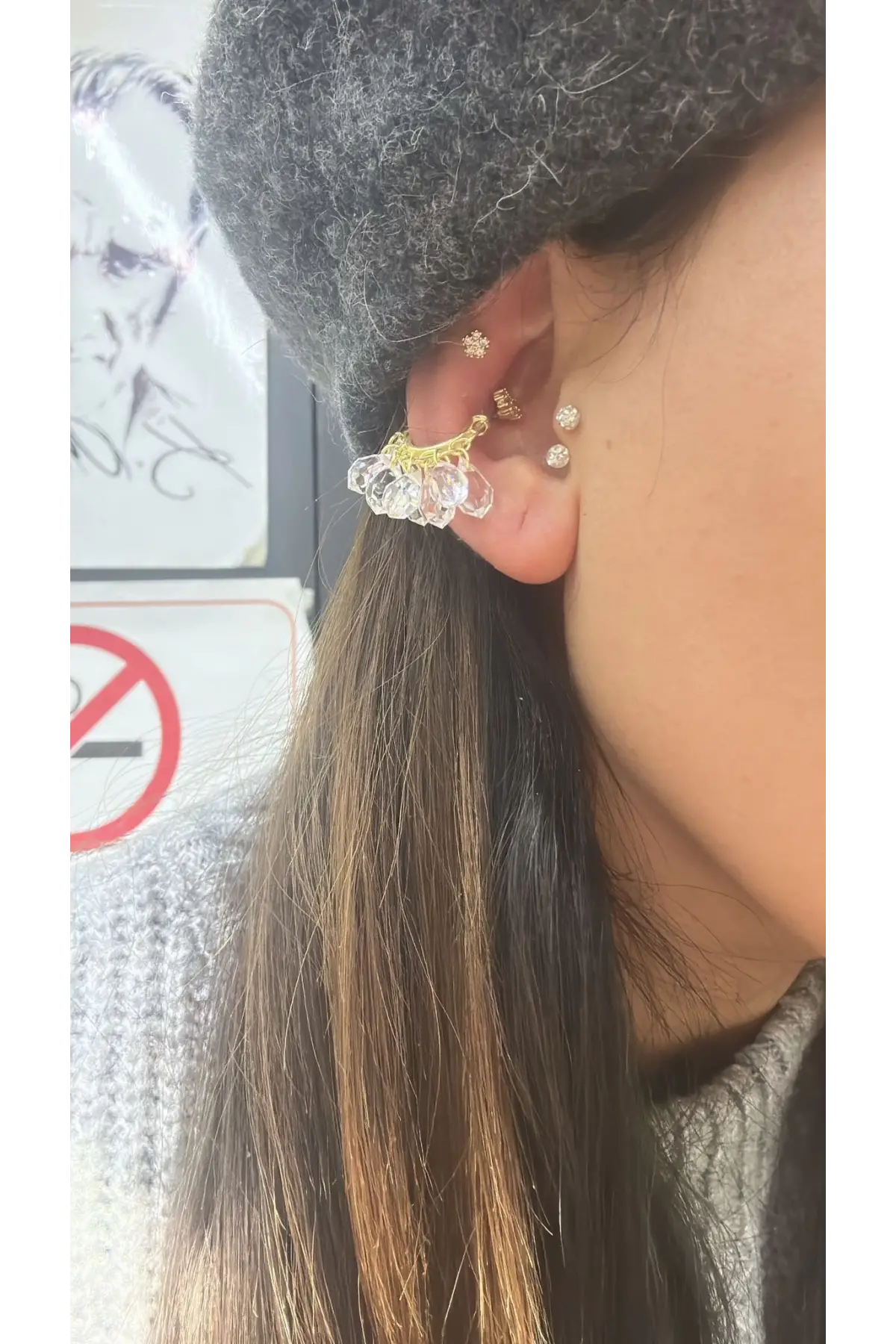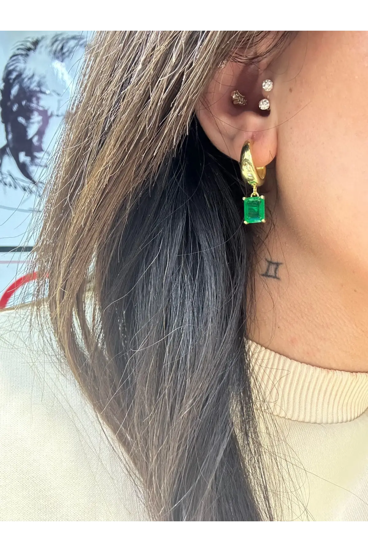 925 Ayar Gümüş Damla Taşlı Sallantılı Kıkırdak Küpe