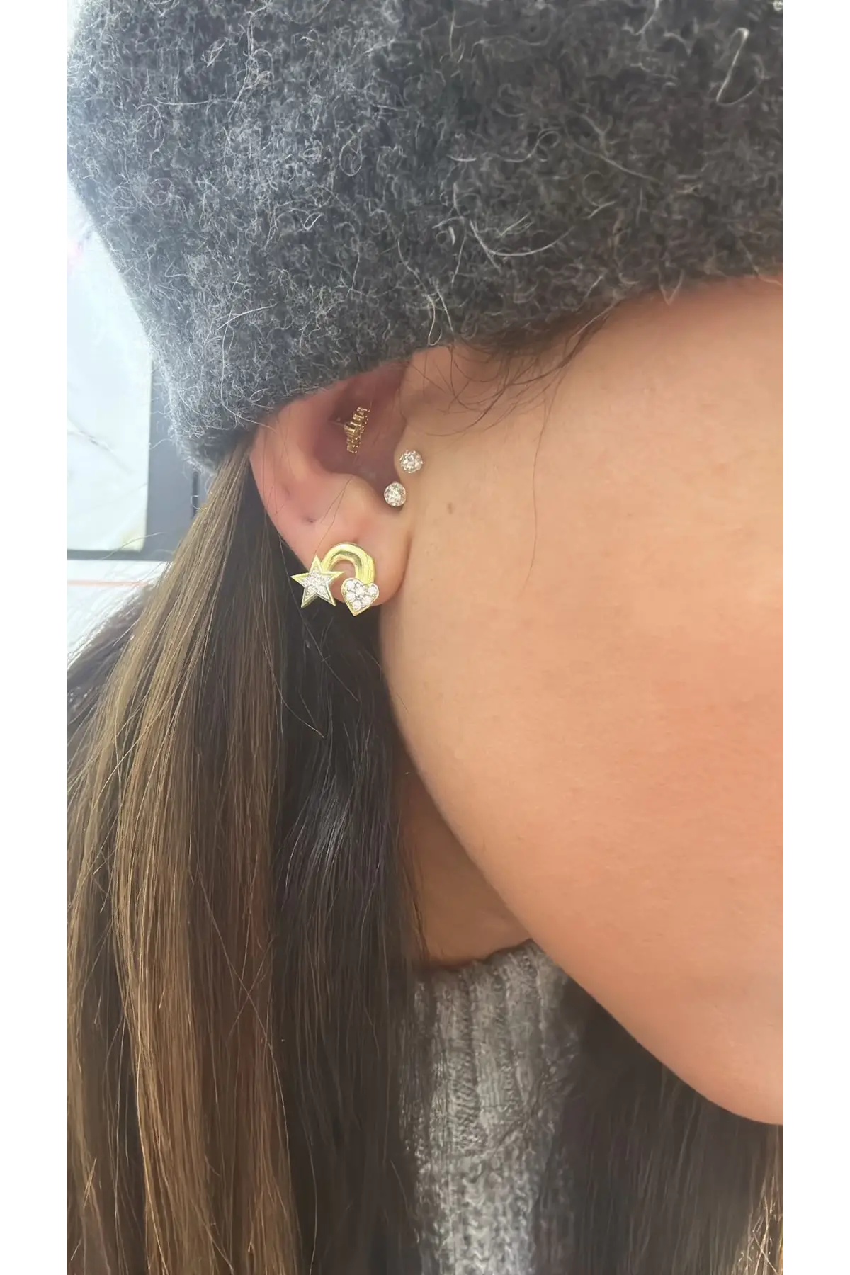 925 Ayar Gümüş Yıldız Kalp Fiğürlü Trend Küpe