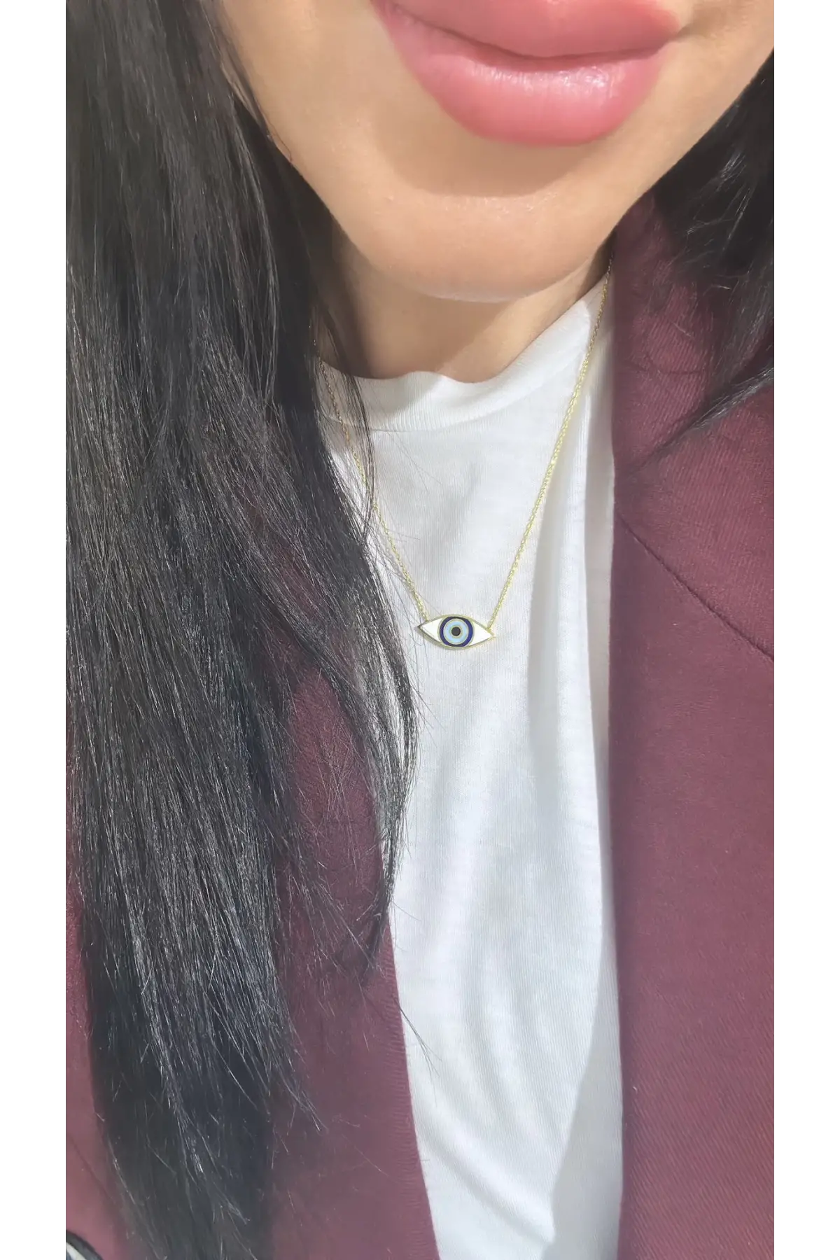 925 Ayar Gümüş Gözlü Mineli Kolye