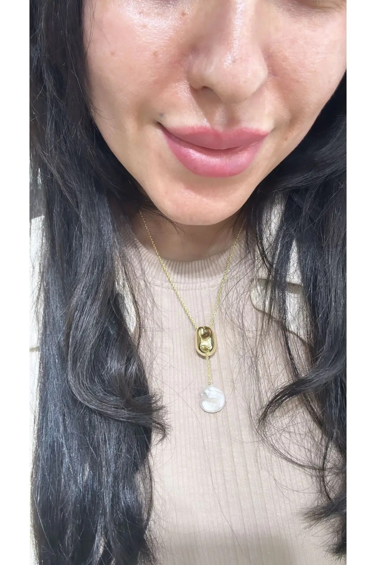 925 Ayar Gümüş Altın Yaldızlı Barok İncili Sade Kolye