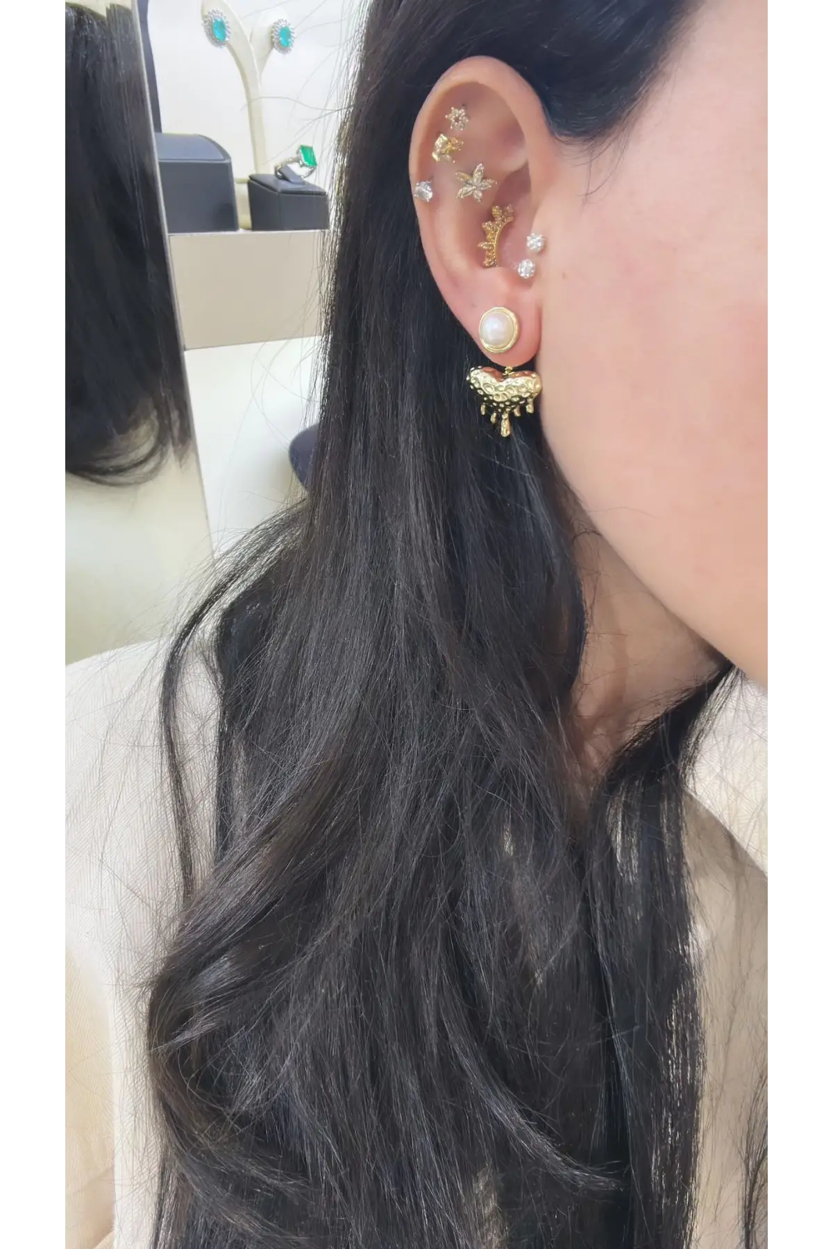 925 Ayar Gümüş Dövmeli Kalp Özel Seri İncili Küpe