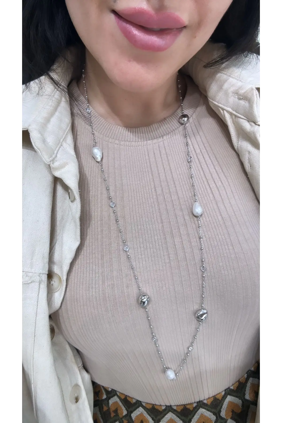 925 Ayar Gümüş Barok İncili Top Top Zincirli Kolye