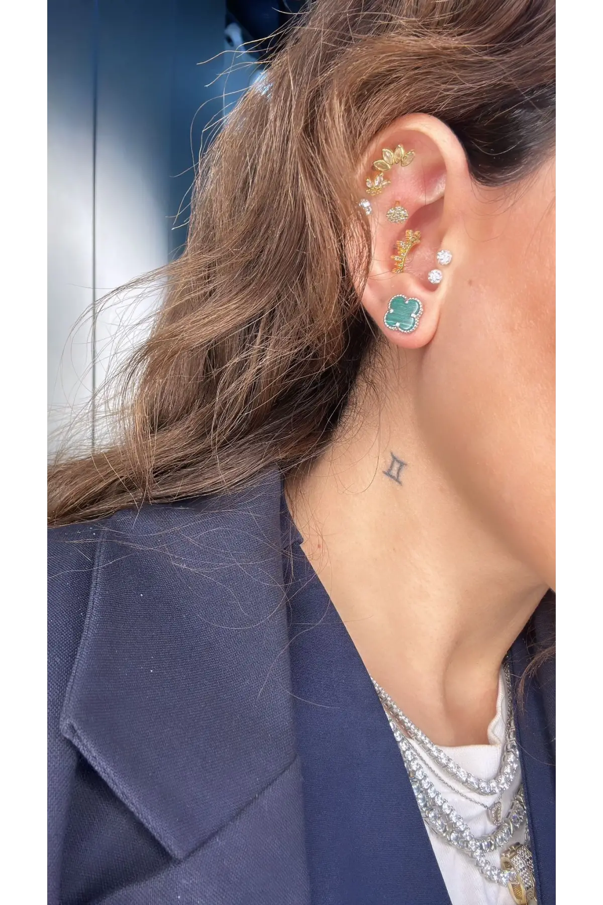 925 Ayar Gümüş Renkli Taşlı Çift Kullanımlı Küpe