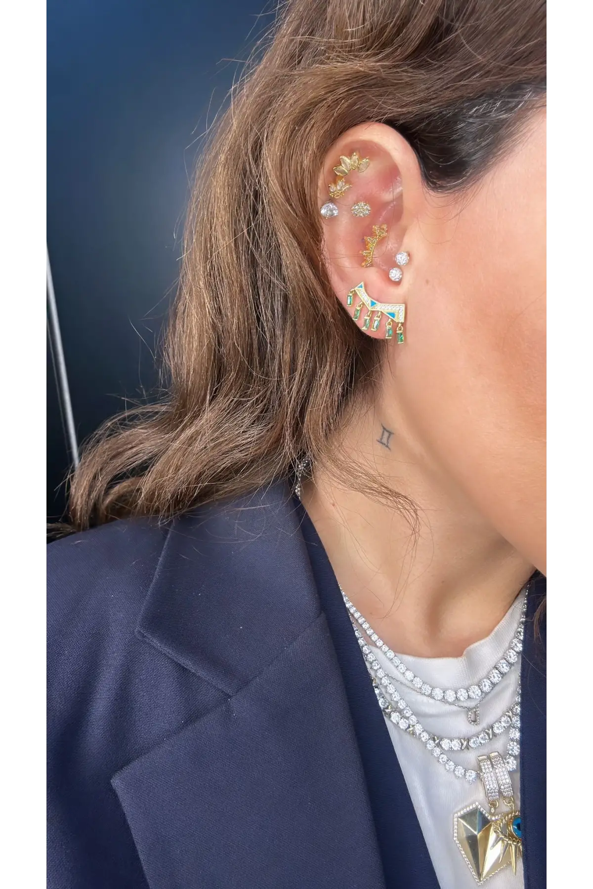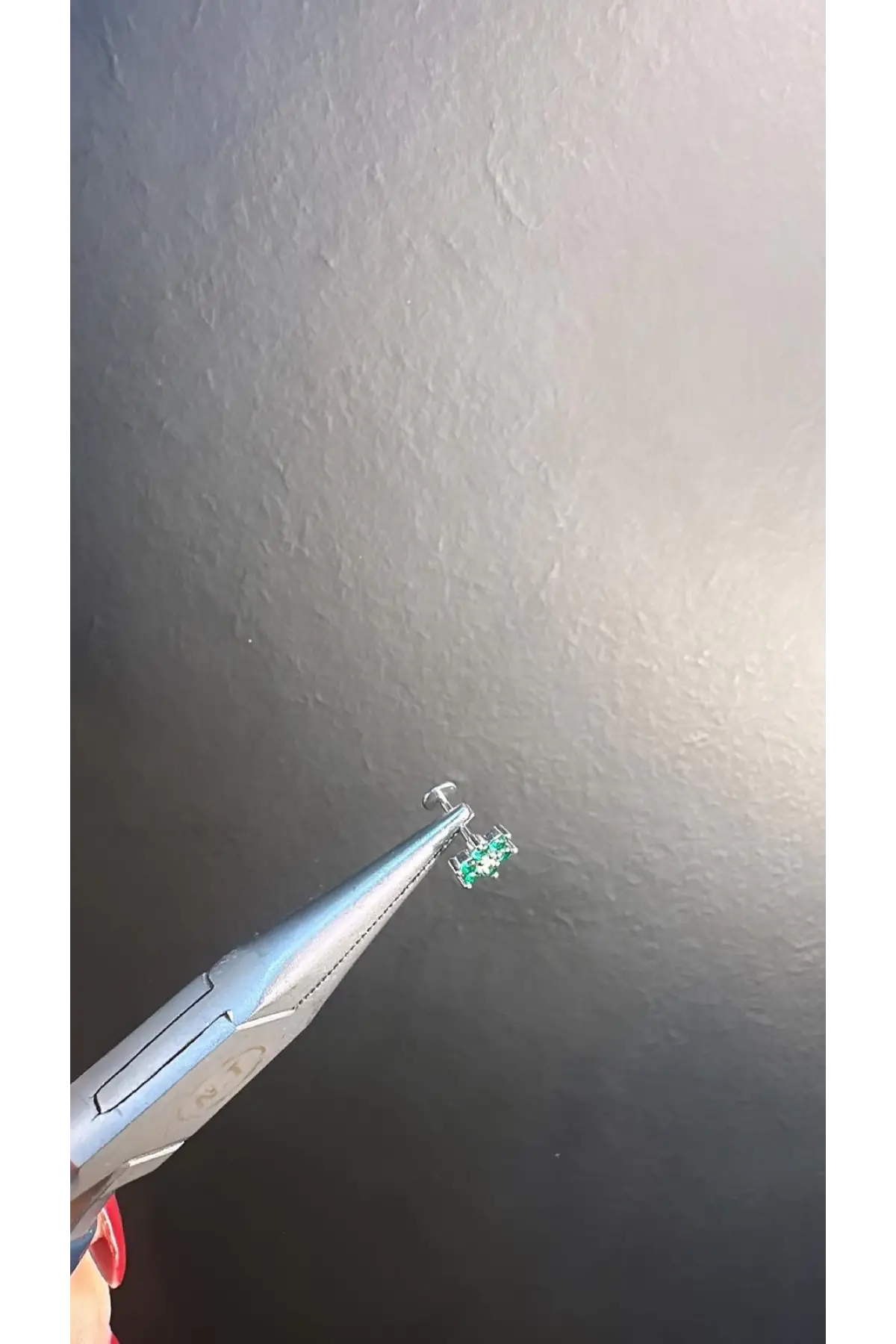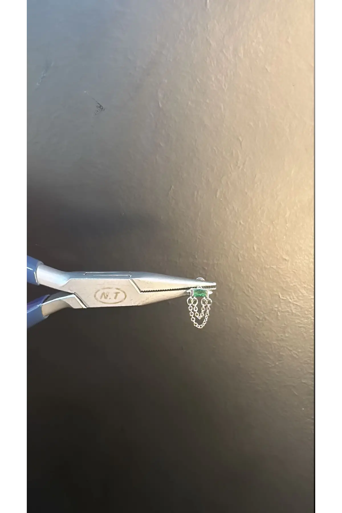 925 Ayar Gümüş Yeşil Taşlı Çoklu Sallantılı Vidalı Küpe