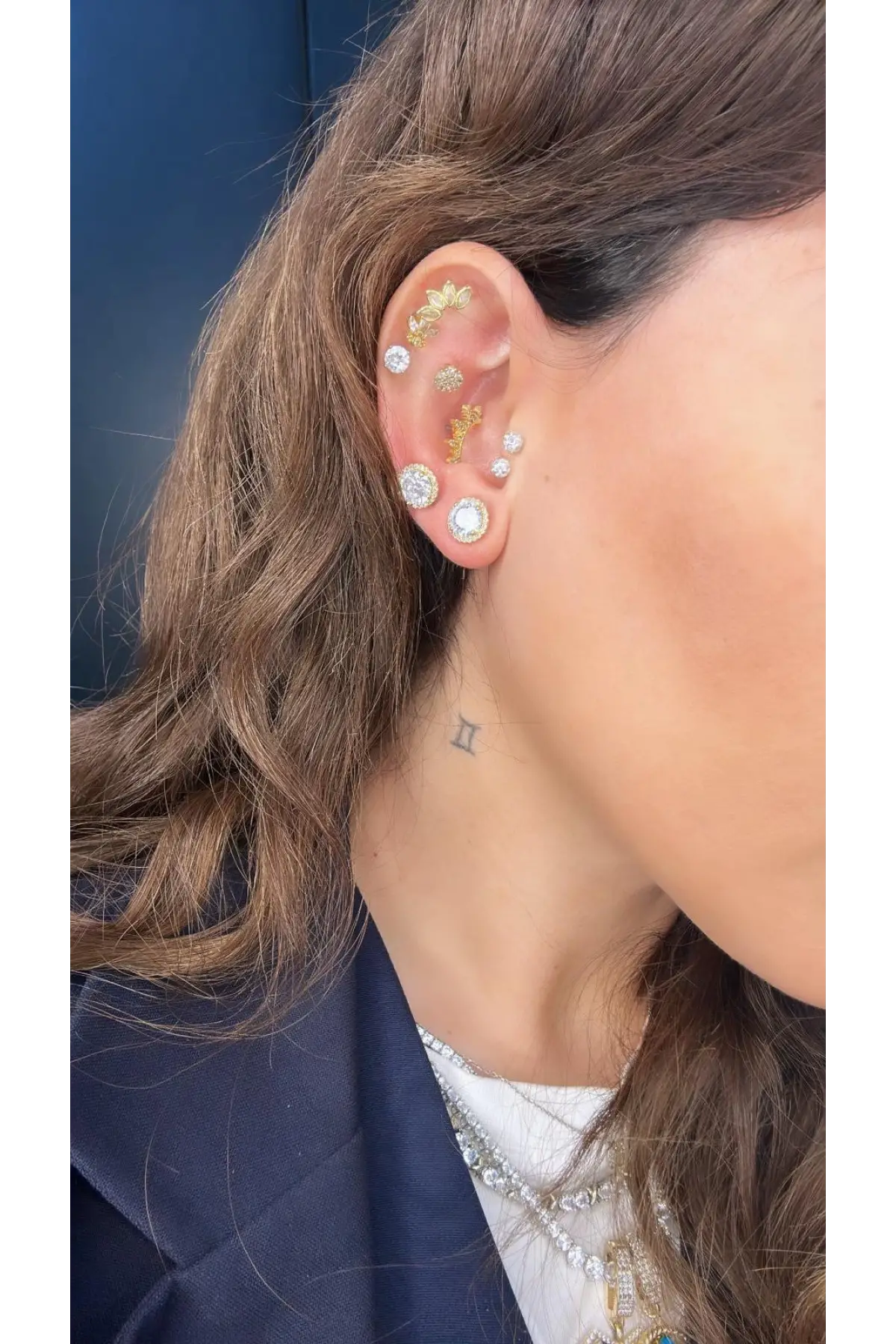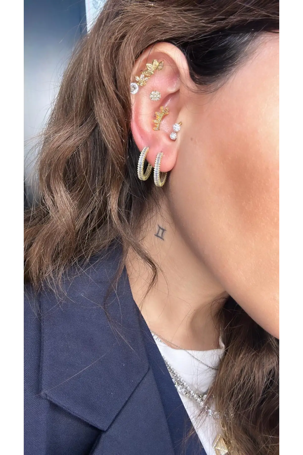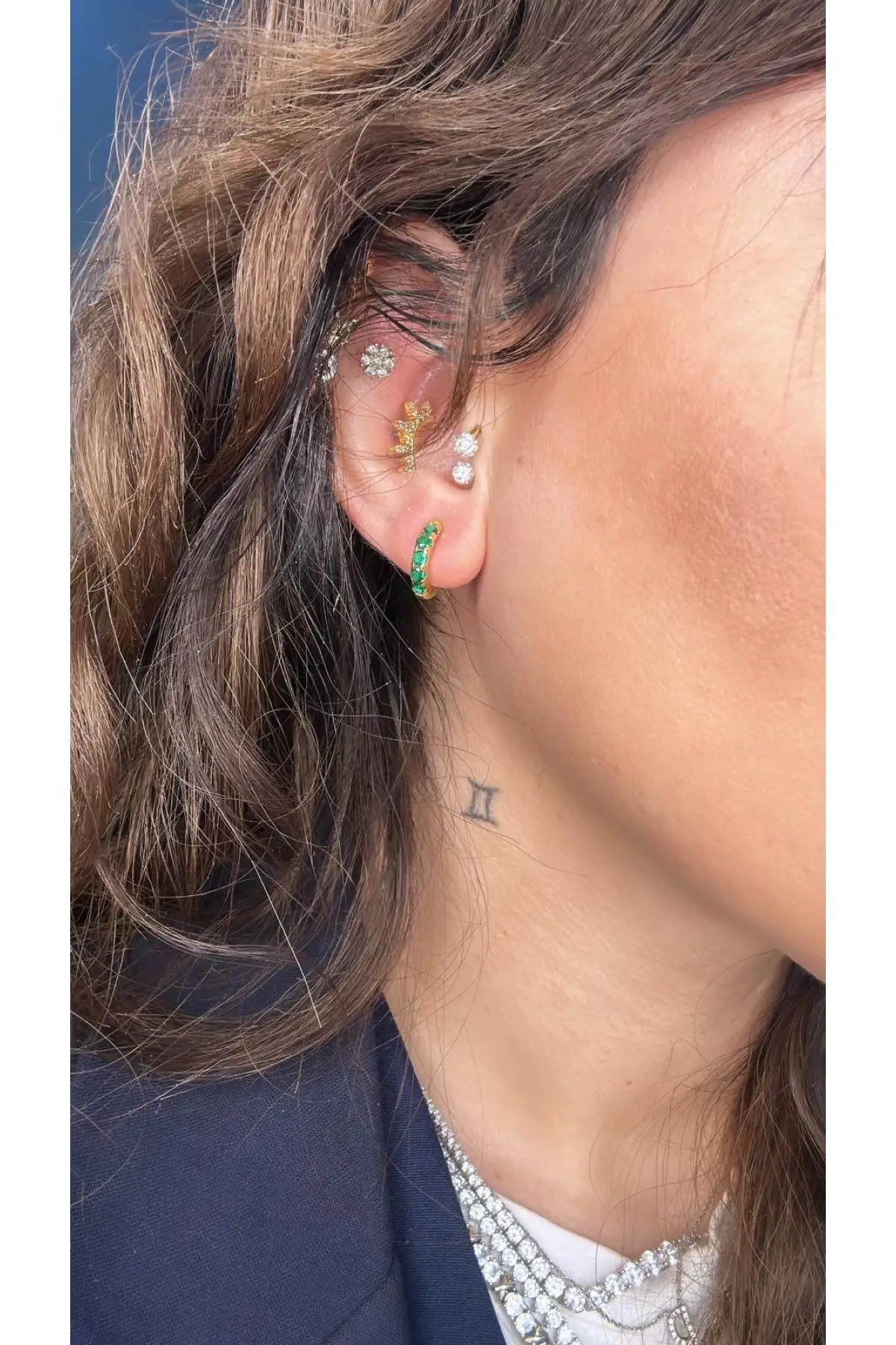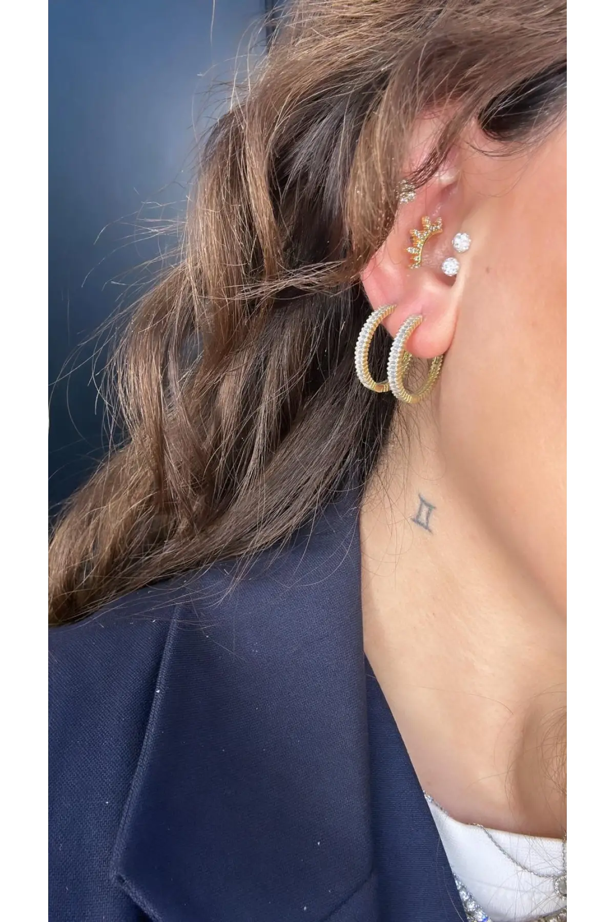 925 Ayar Gümüş Baget Taşlı Halka Gold Küpe
