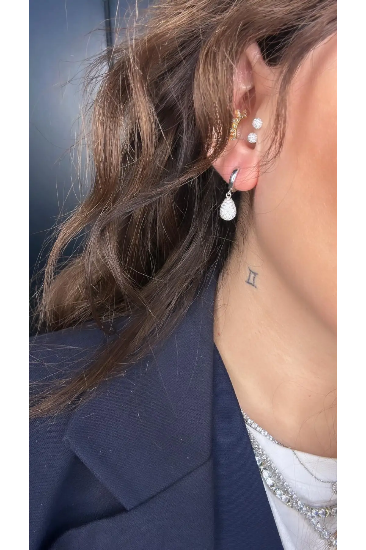 925 Ayar Gümüş Pırlanta Montür Damla Model Çivili Küpe