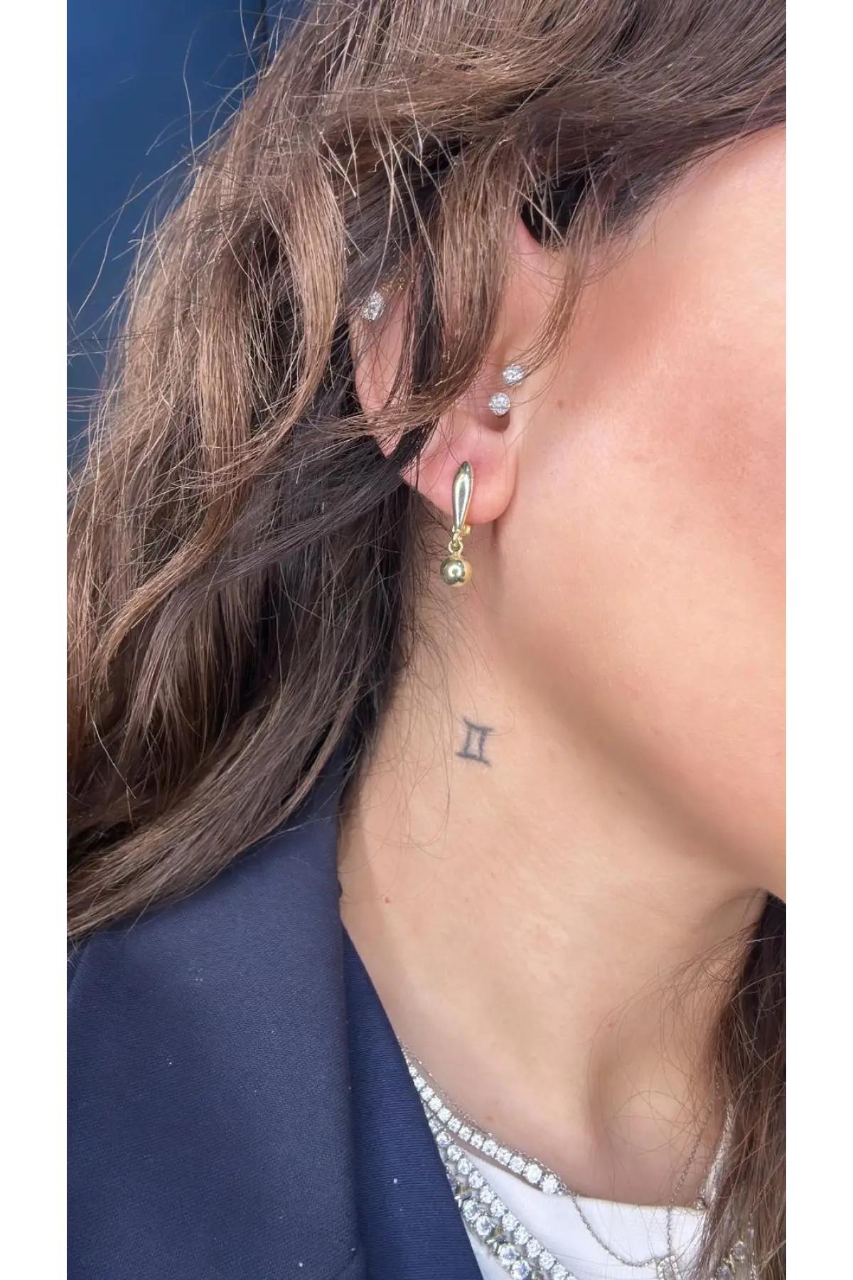 925 Ayar Gümüş Top Uçlu Gold Küpe