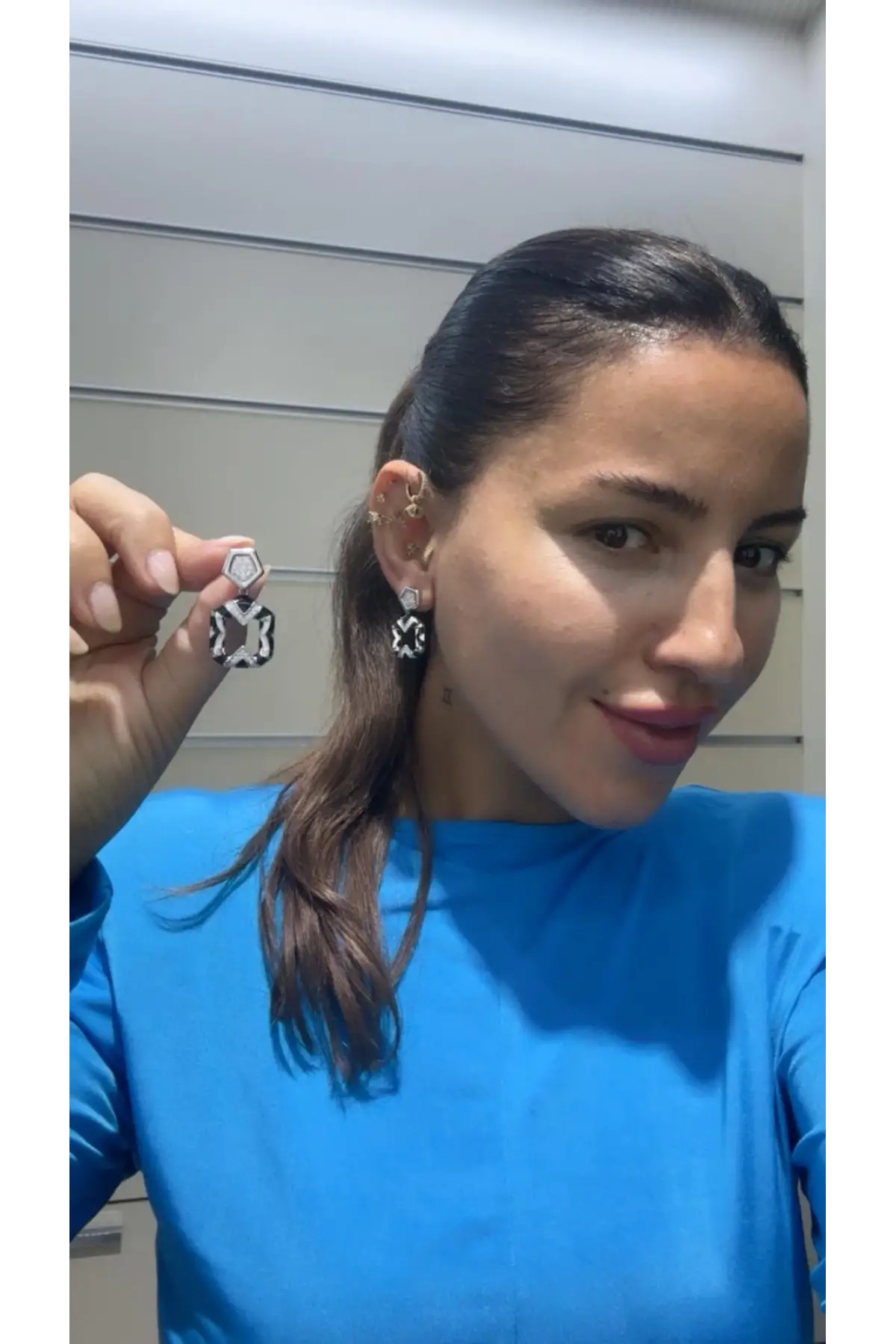 925 Ayar Gümüş Siyah Beyaz Mineli Çivili Küpe