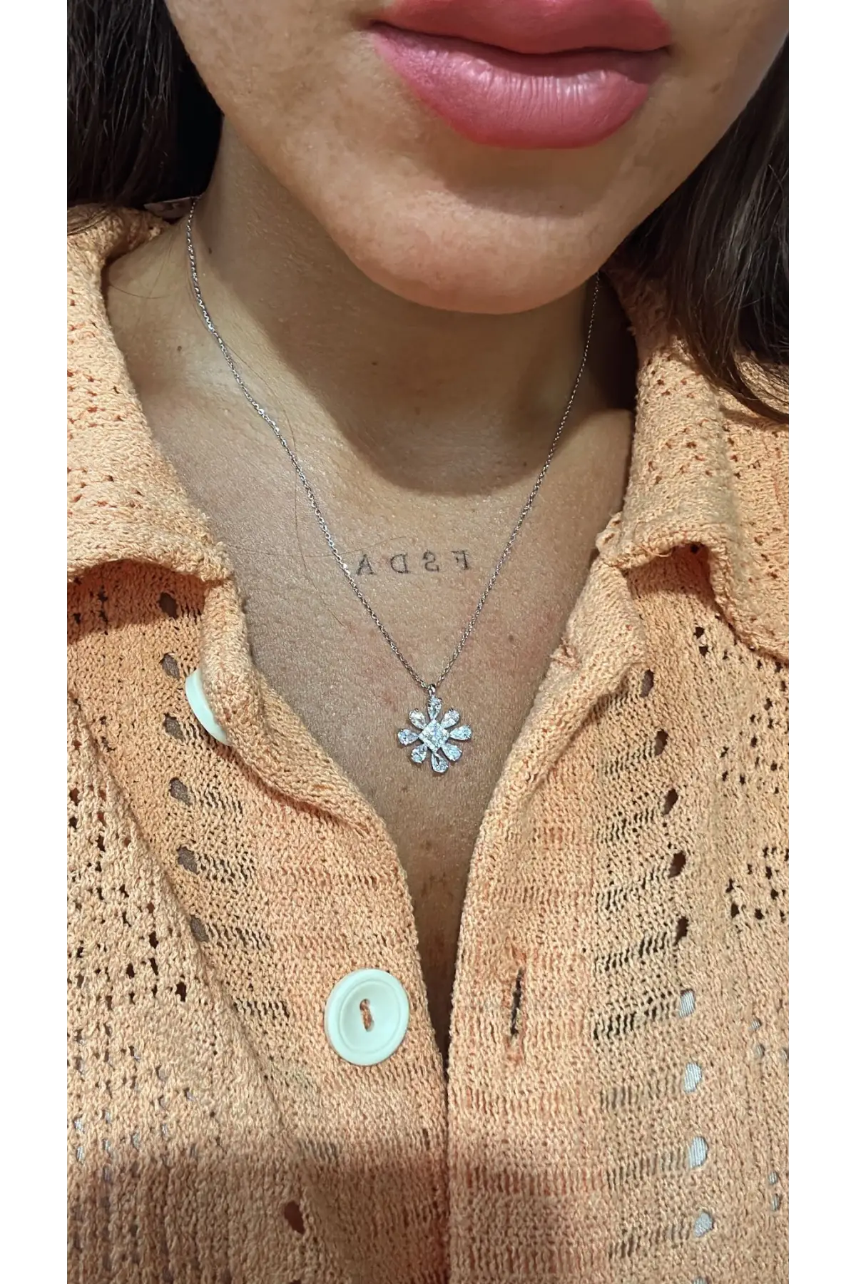 925 Ayar Gümüş Çiçek Model Gold Kolye