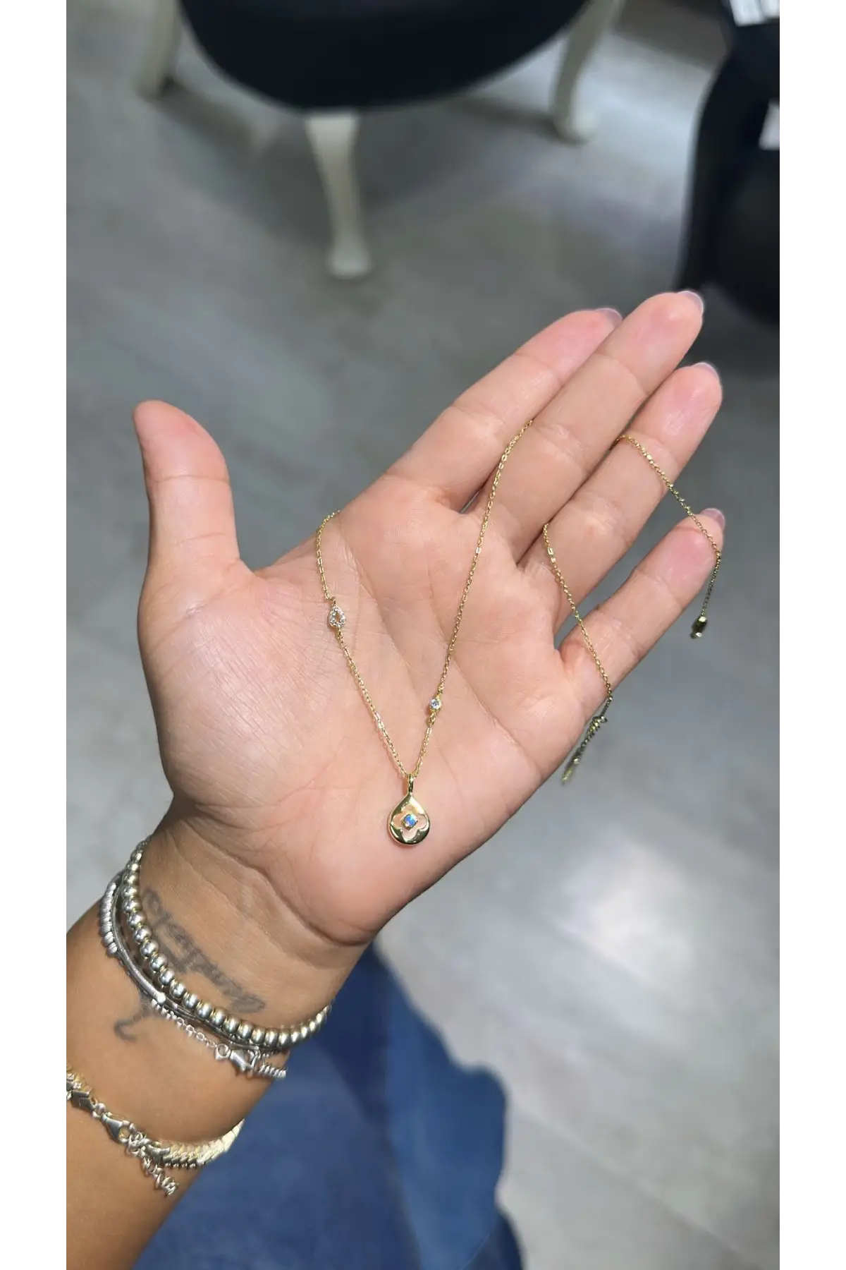 925 Ayar Gümüş Taş Taş Sallantılı Silver Kolye
