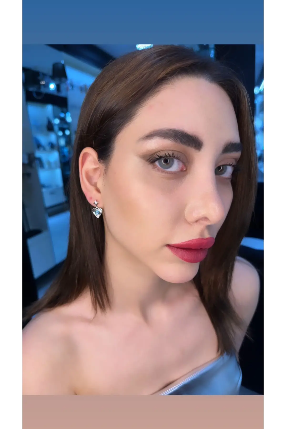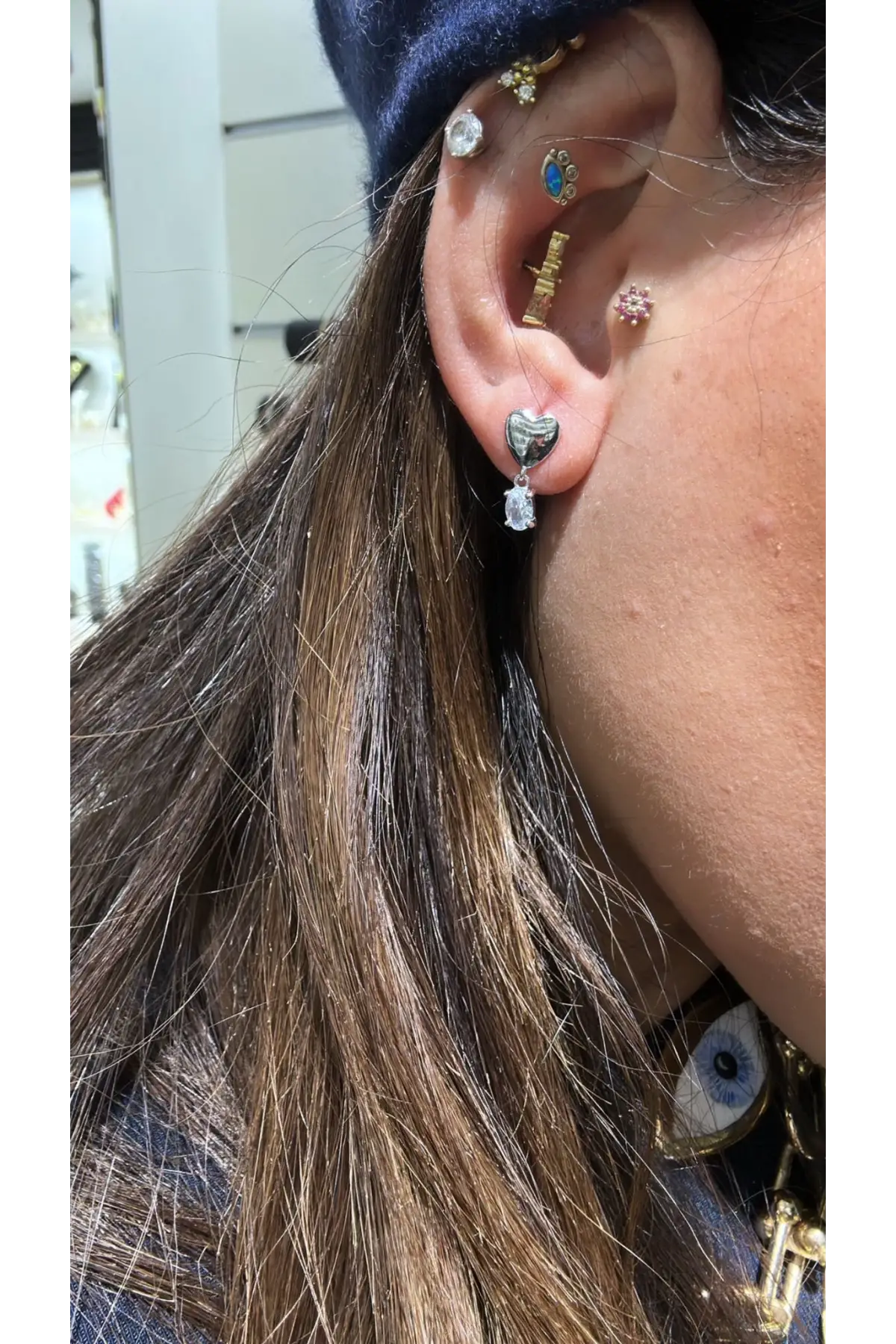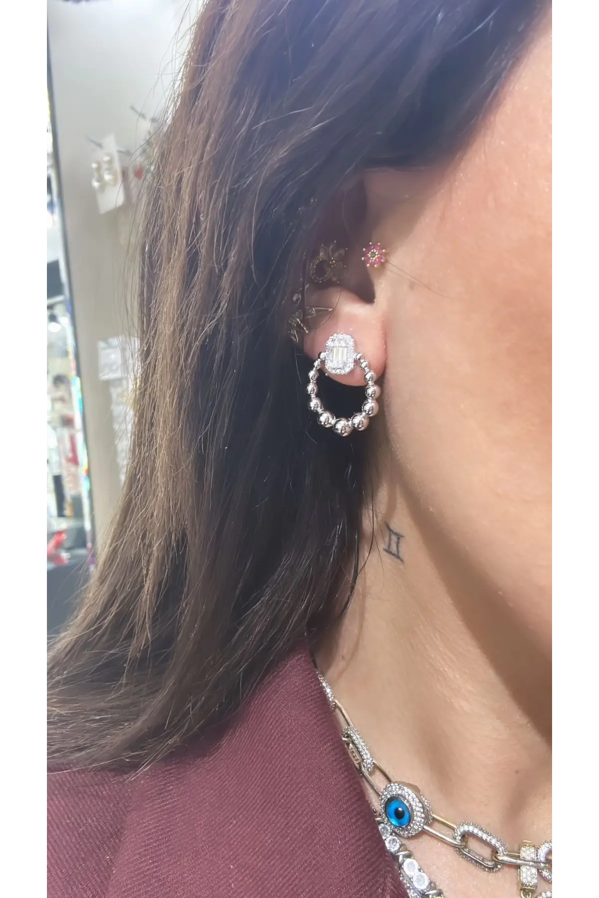 925 Ayar Gümüş Gözlü Küçük Sallantılı Silver Küpe