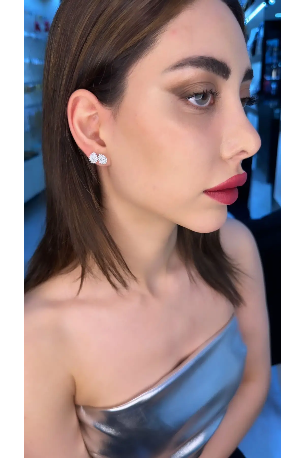 925 Ayar Gümüş Pırlanta Model Vidalı Silver Küpe