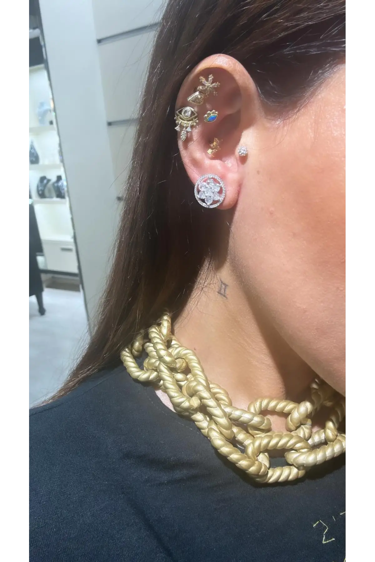 925 Ayar Gümüş Gözlü Küçük Sallantılı Gold Küpe