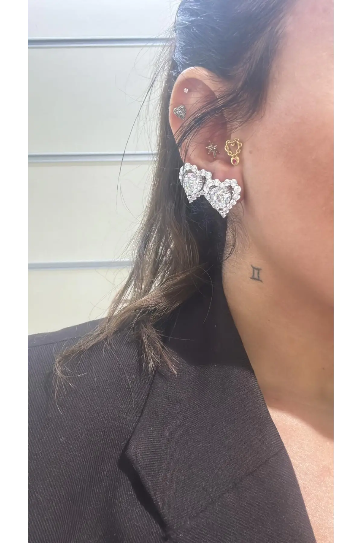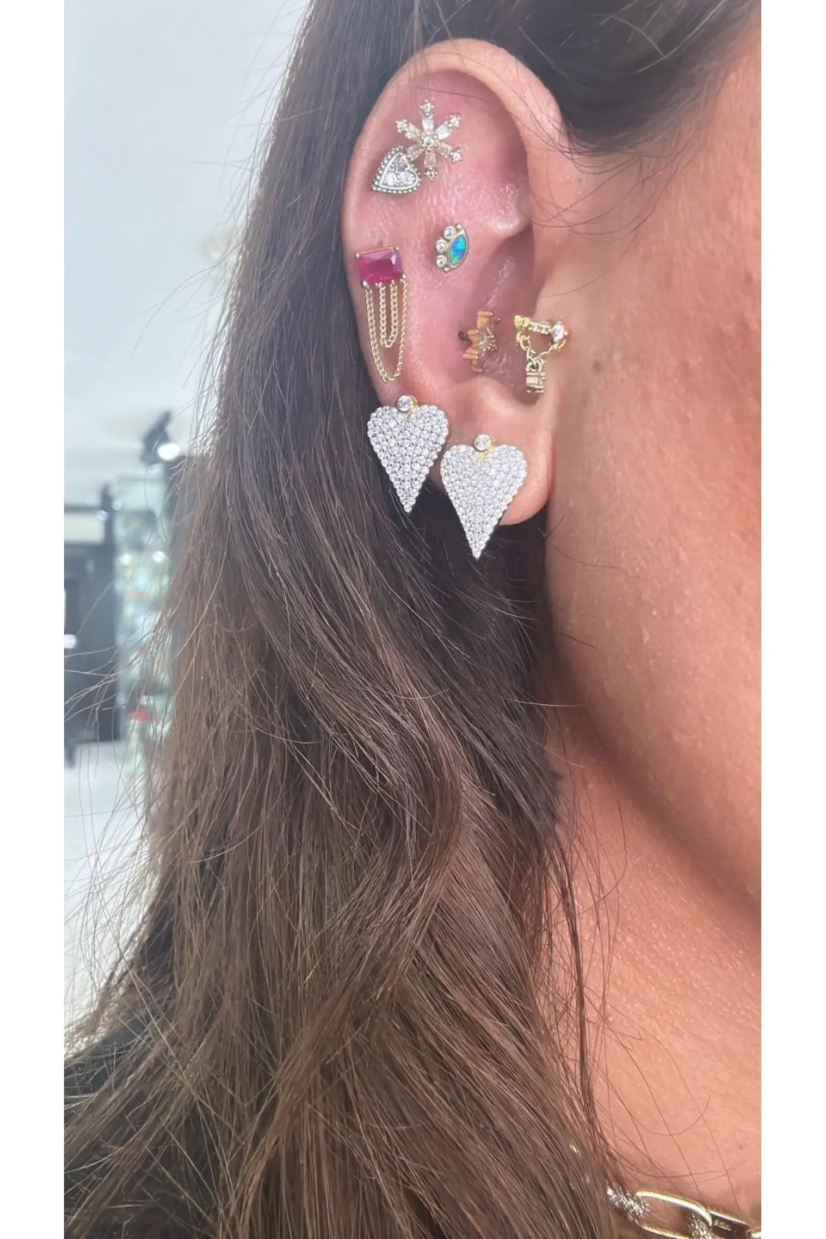 925 Ayar Gümüş İthal Kalp Taş Sallantılı Vidalı Küpe