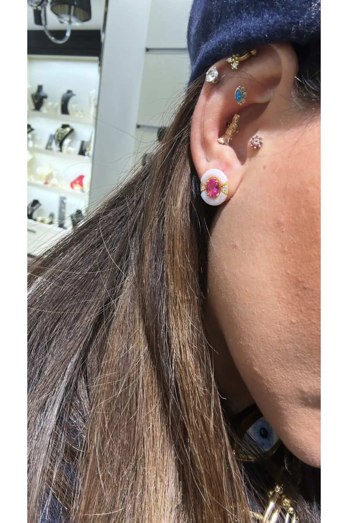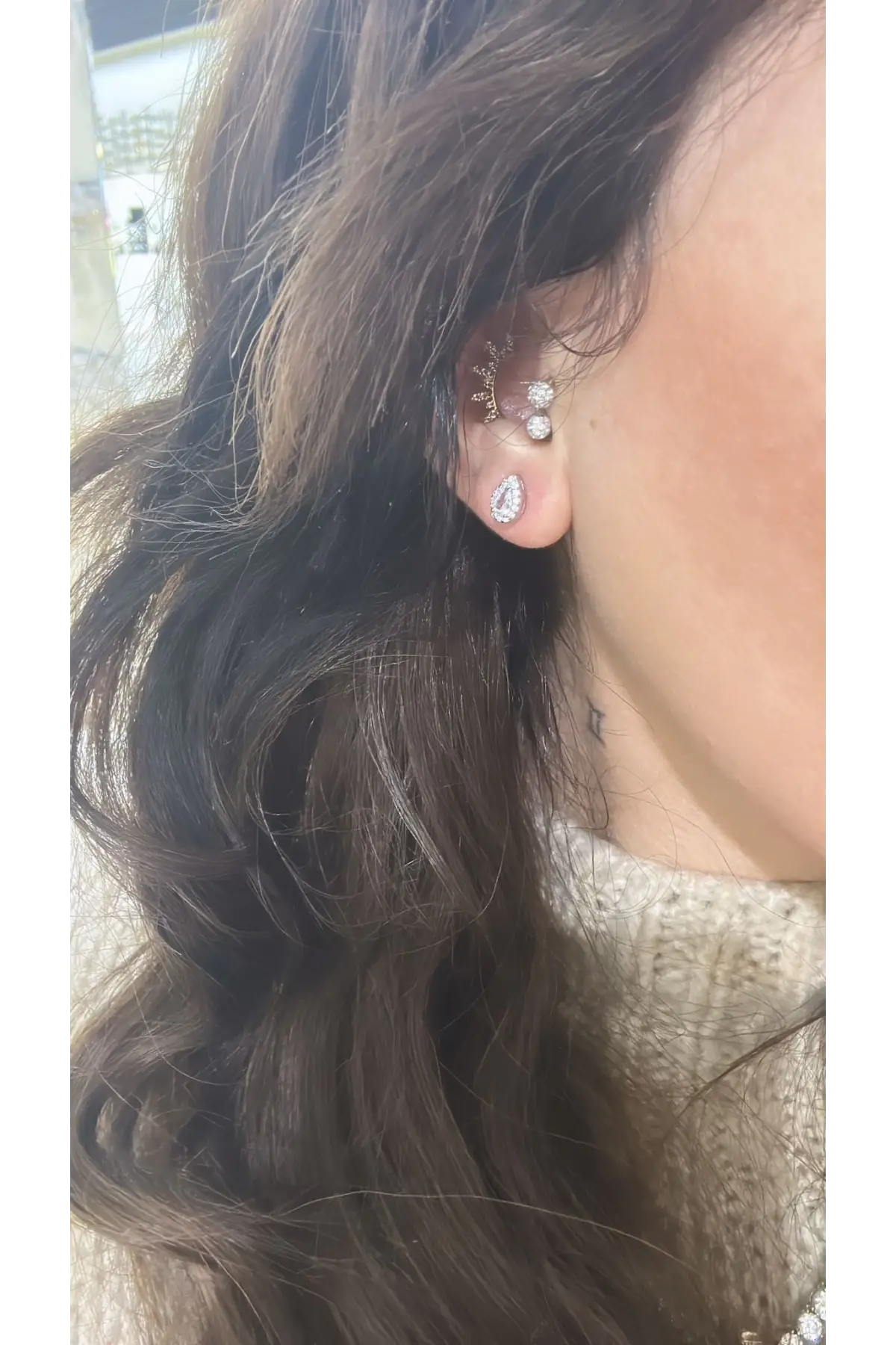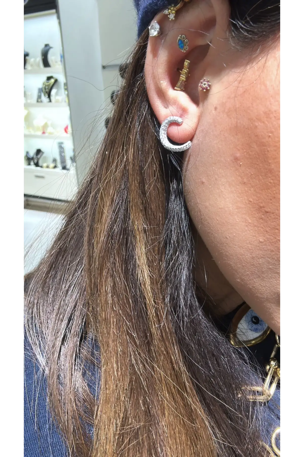 925 Ayar Gümüş İthal Yarım Tamtur Taşlı Vidalı Küpe